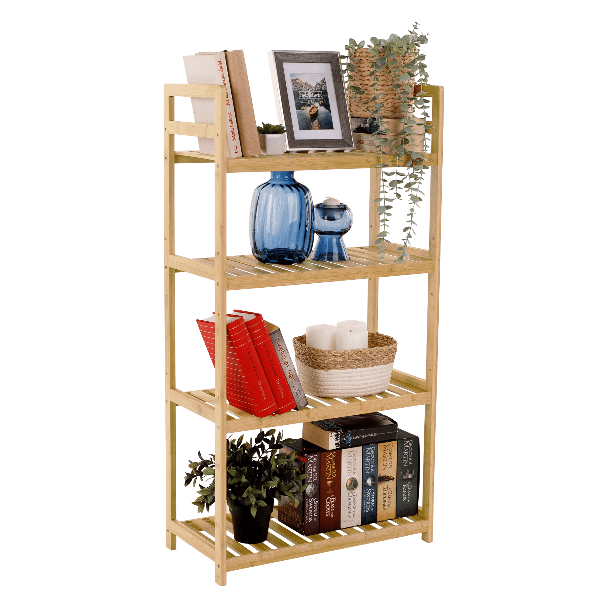 4-policový regál, prírodný bambus, FIORE TYP 2