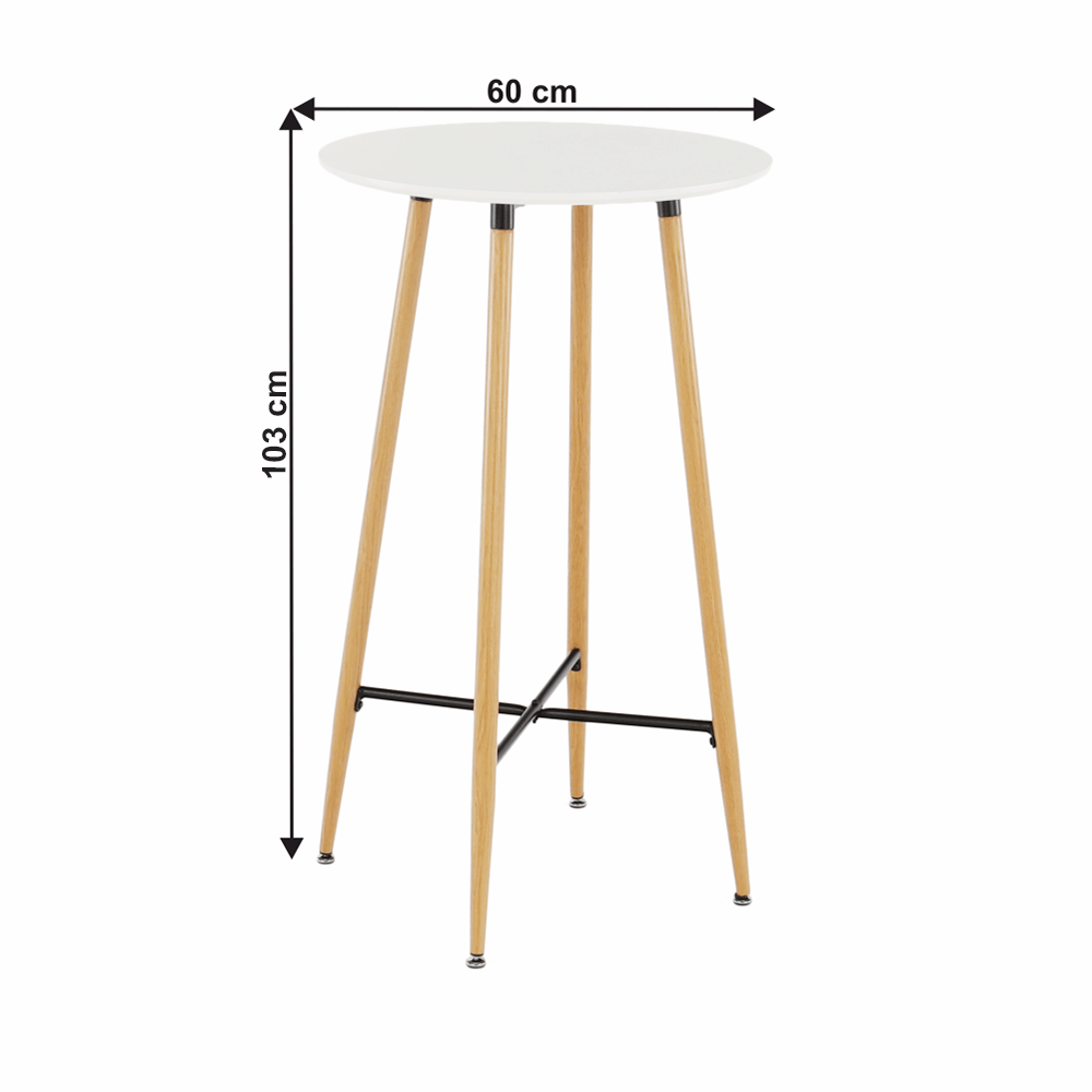 Barový stôl, biela/dub, priemer 60 cm, IMAM
