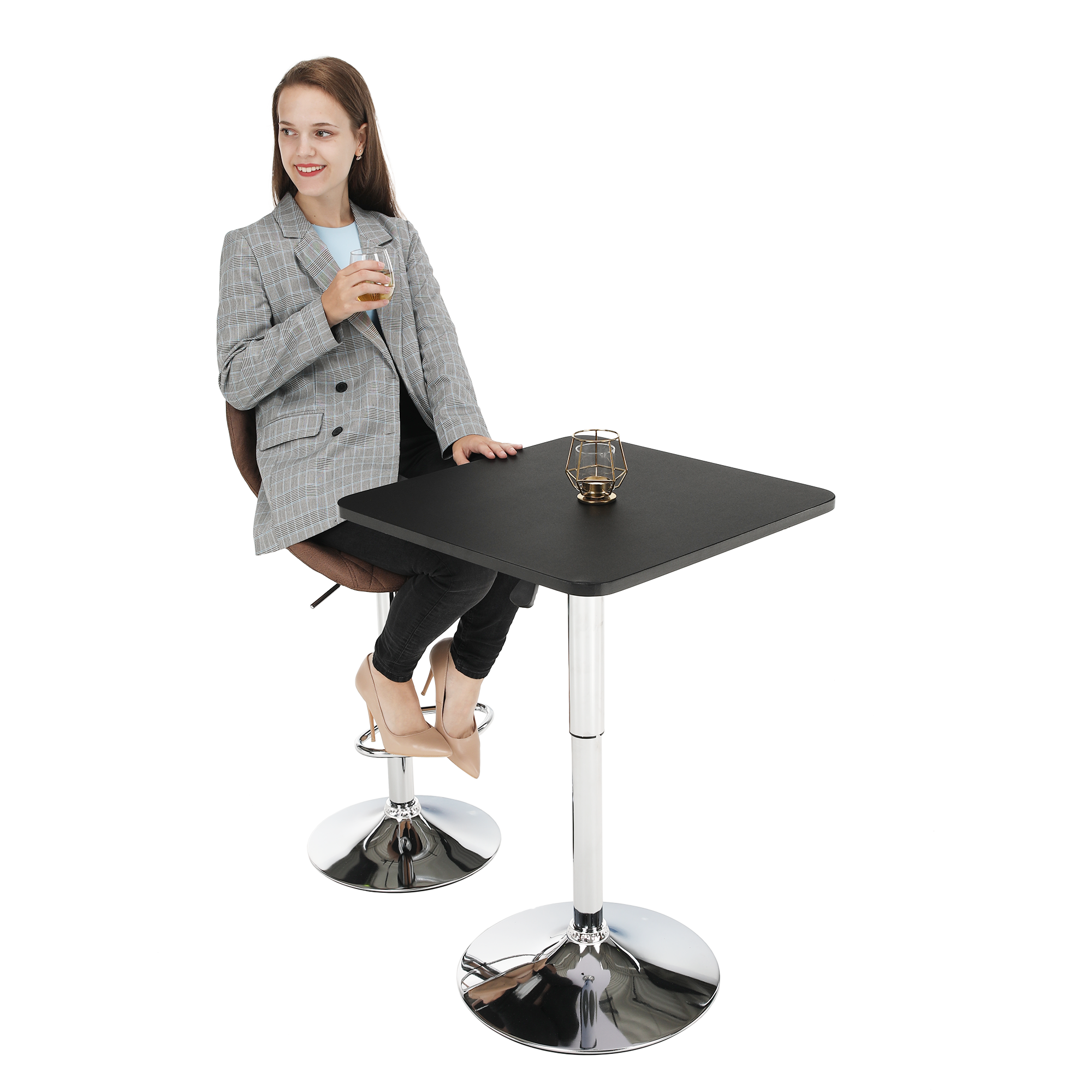 Barový stôl s nastaviteľnou výškou, čierna, 57x84-110 cm, FLORIAN
