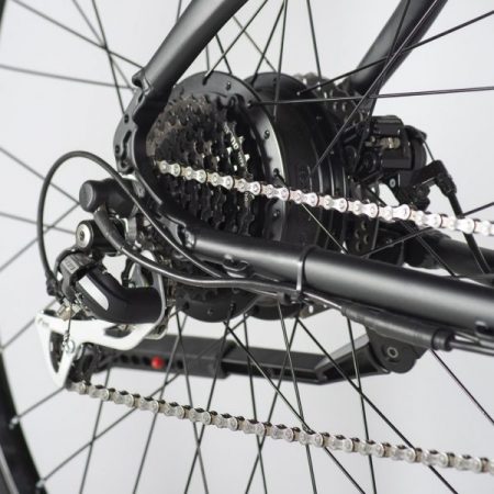 E-xonic s hliníkovým rámom je poháňaný 250 W elektrickým motorom v zadnom náboji a 576 Wh batériou s článkami LG, ktorá je čiastočne integrovaná do rámu. S týmto modelom môžete jazdiť až 120 km na jedno nabitie. Vzdialenosť závisí od profilu trasy, hmotnosti jazdca a použitia asistencie. Komfort pri jazde zvyšuje uzamykateľná odpružená vidlica, mechanické kotúčové brzdy a prehadzovačka Shimano Altus 3x8. Všetky informácie sa zobrazujú na LCD displeji, kde je možné prepínať medzi funkciami. Požiadajte o upgrade displeja na C171 a spojte sa s BAFANG GO App pre smart pôžitok.