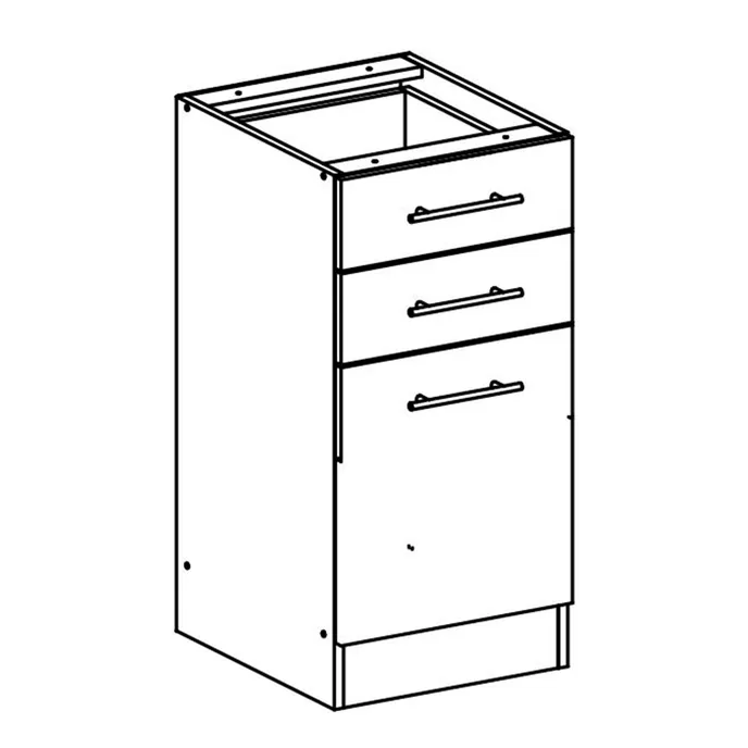 Skrinky základnej zostavy sú dodávané vrátane pracovnej dosky, drezová skrinka je dodávaná bez pracovnej dosky. Sektorové skrinky sú dodávané bez pracovnej dosky.