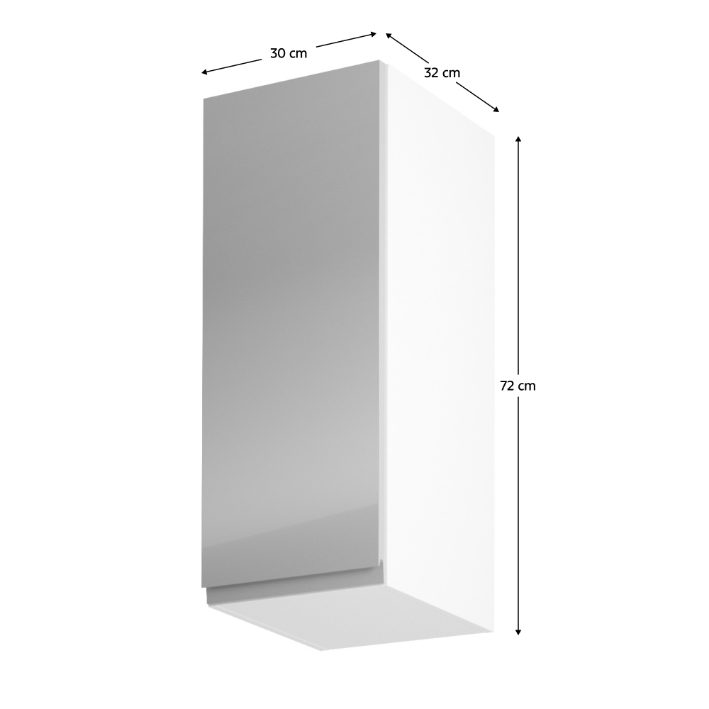 Horná skrinka, biela/sivý extra vysoký lesk, ľavá, AURORA G30