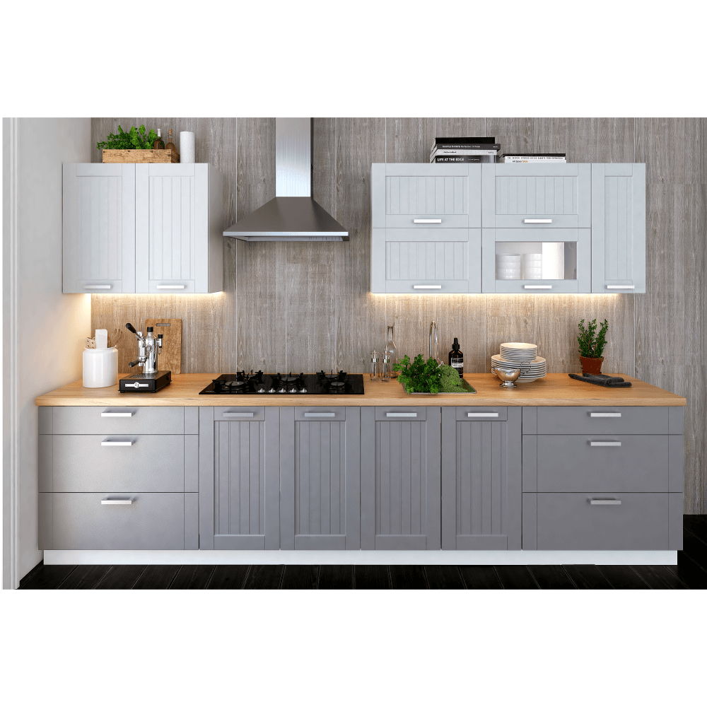 Skrinky sú dodávané bez pracovnej dosky. Pracovnú dosku v prevedení gold craft oak v hrúbke 38 mm je možné doobjednať v cene 49 Eur/1 bm.