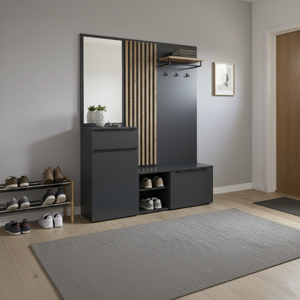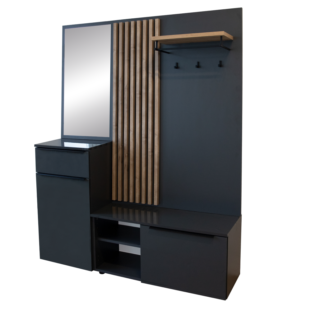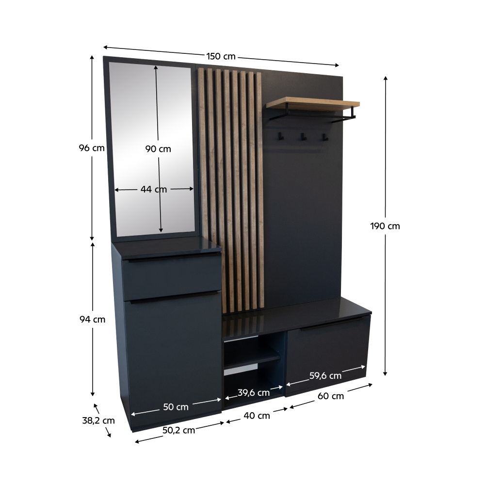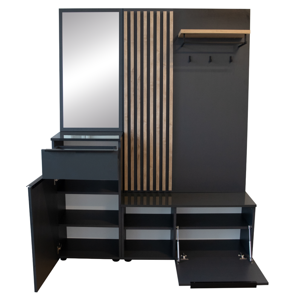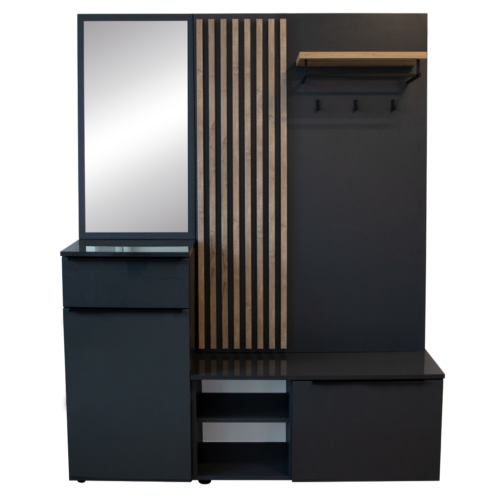 Predsieňová zostava, antracit extra vysoký lesk HG/dub artisan, ALIVA V2