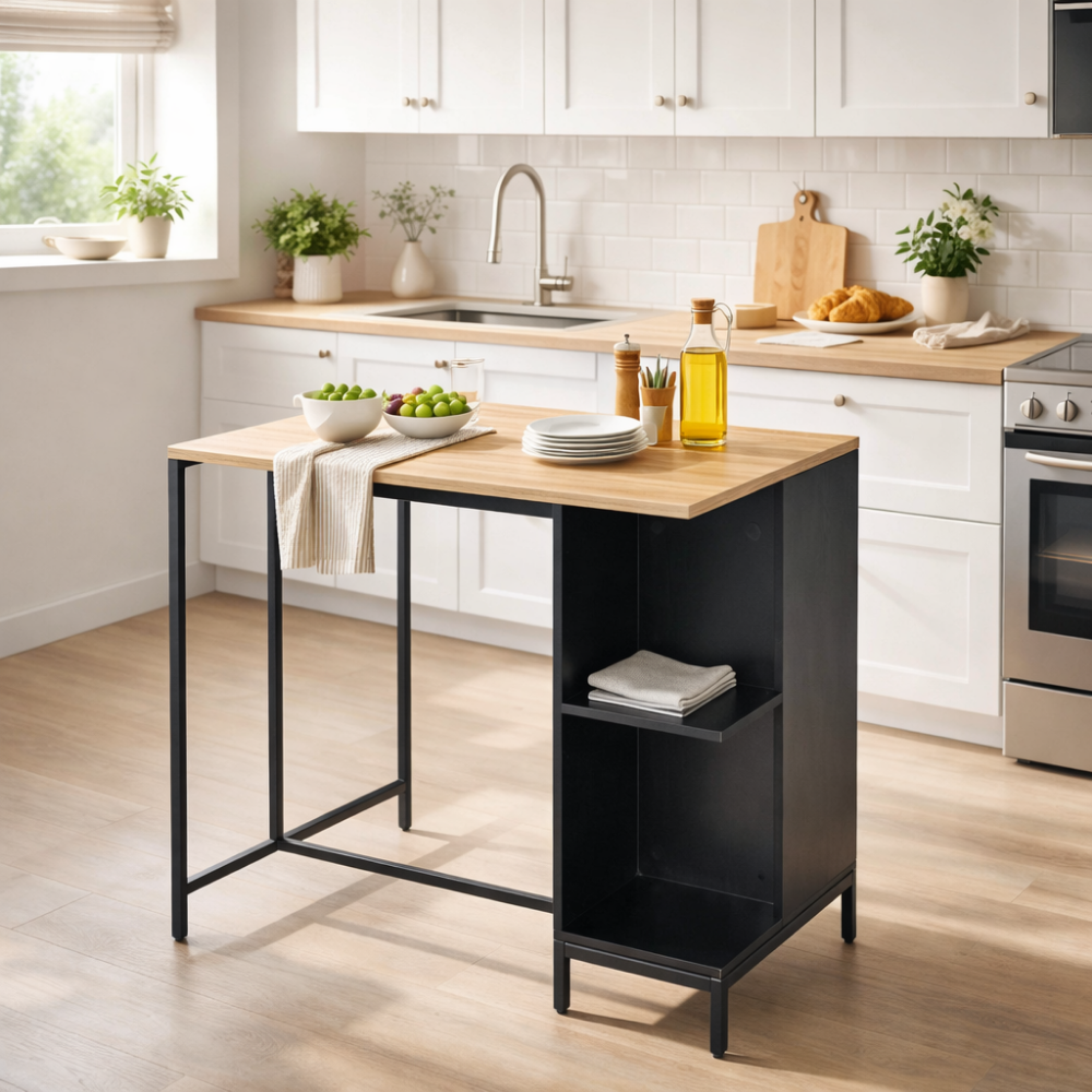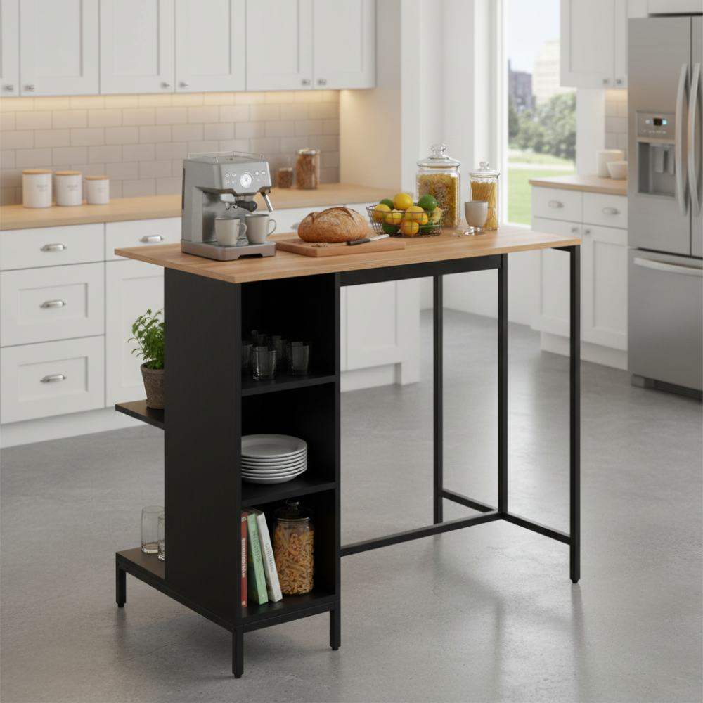 Kuchynský ostrovček, 100x60 cm, dub/čierna, FIGO