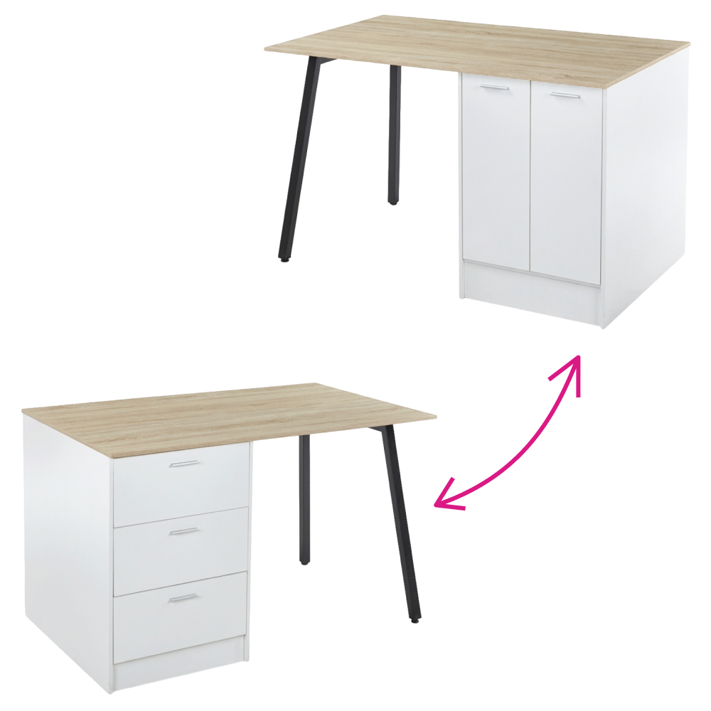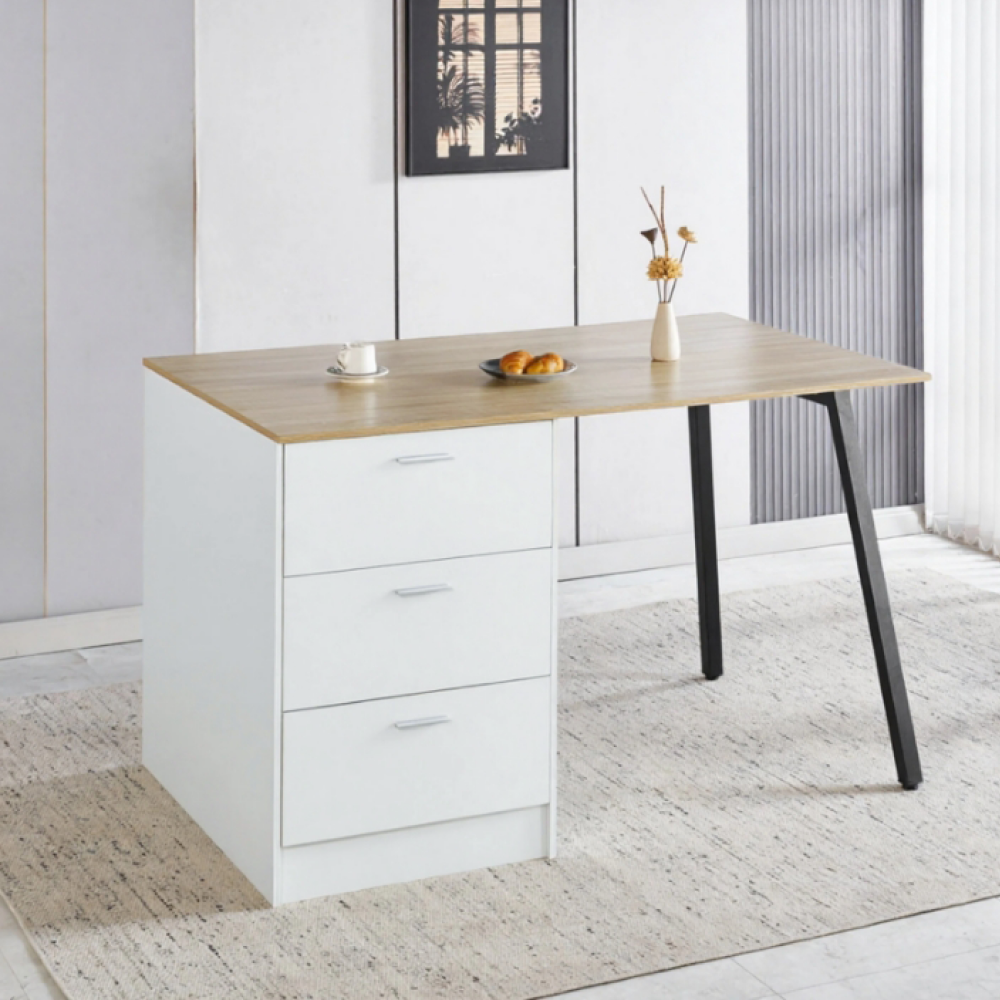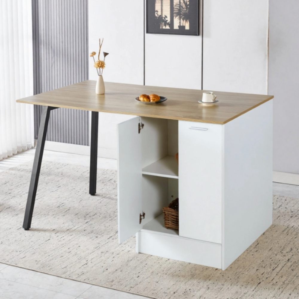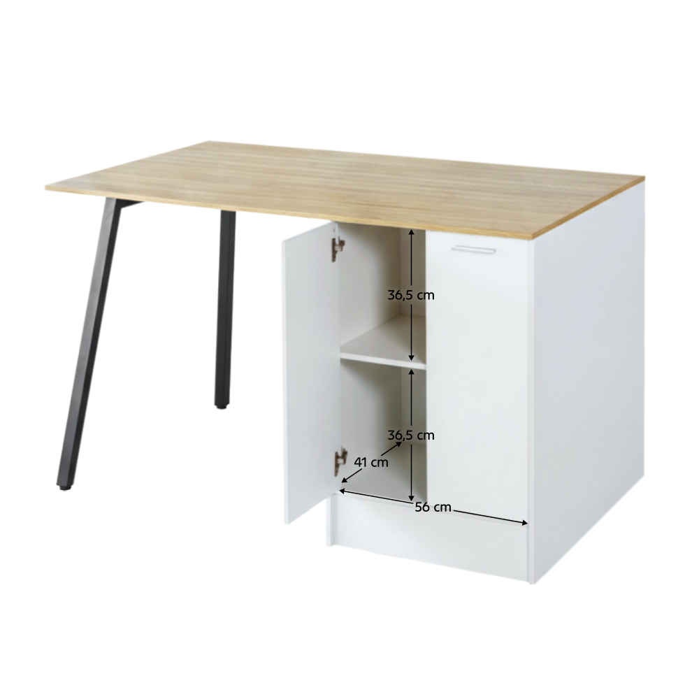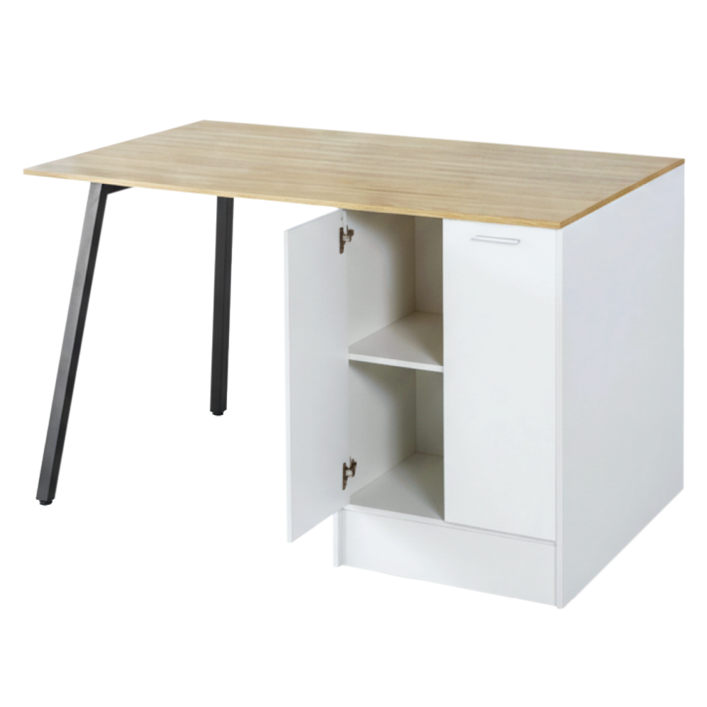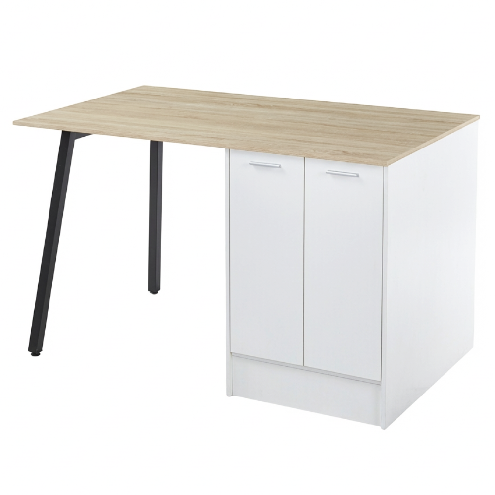 Kuchynský ostrovček, 150x90 cm, dub/biela/čierna, XILO