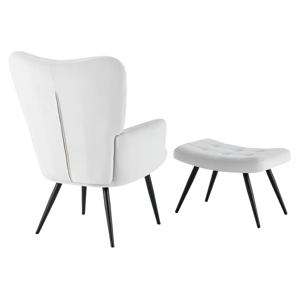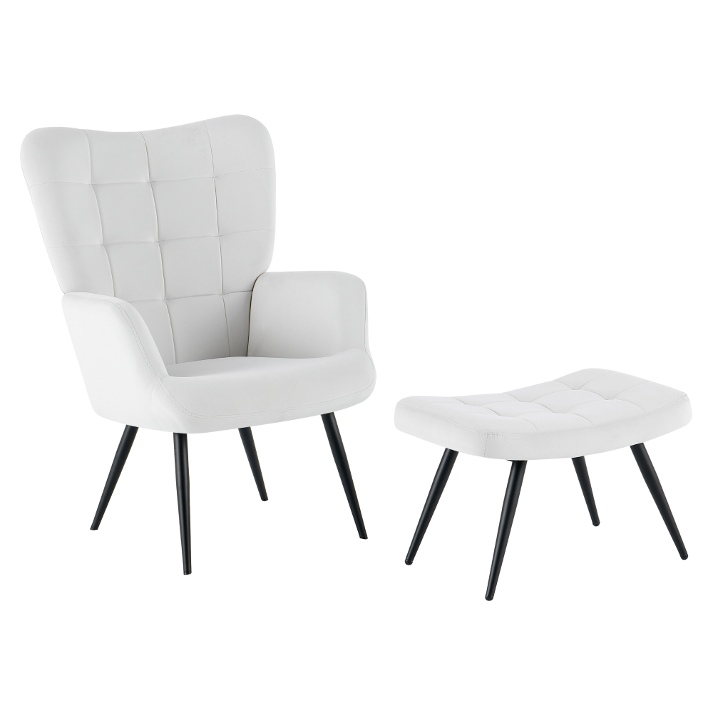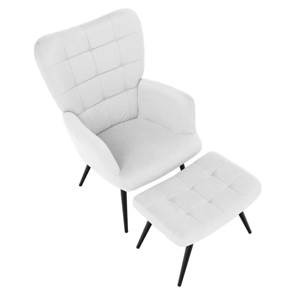 Kreslo s podnožou, svetlosivá Velvet látka/čierna, HABEN