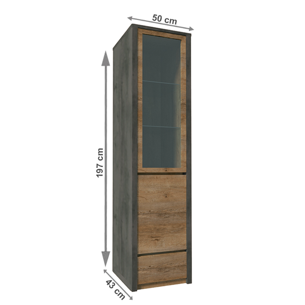 Vitrína, dub lefkas tmavý/smooth sivý, MONTANA W1D