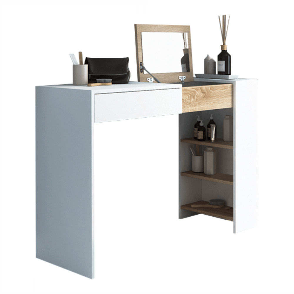 Toaletný stolík/písací stôl, biela/dub sonoma, ELIS