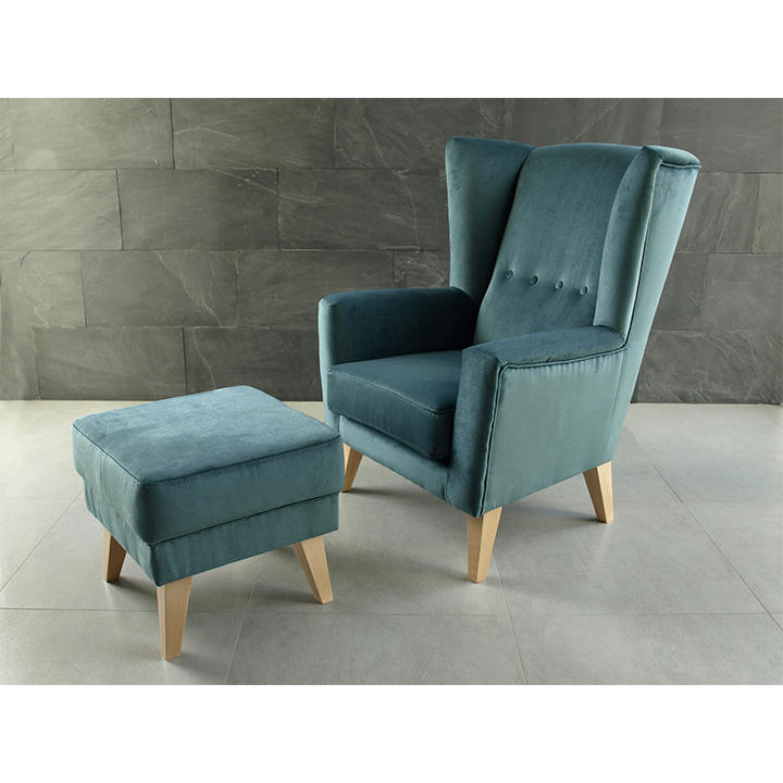 Kreslo-ušiak, mentolová/buk, RODEZA