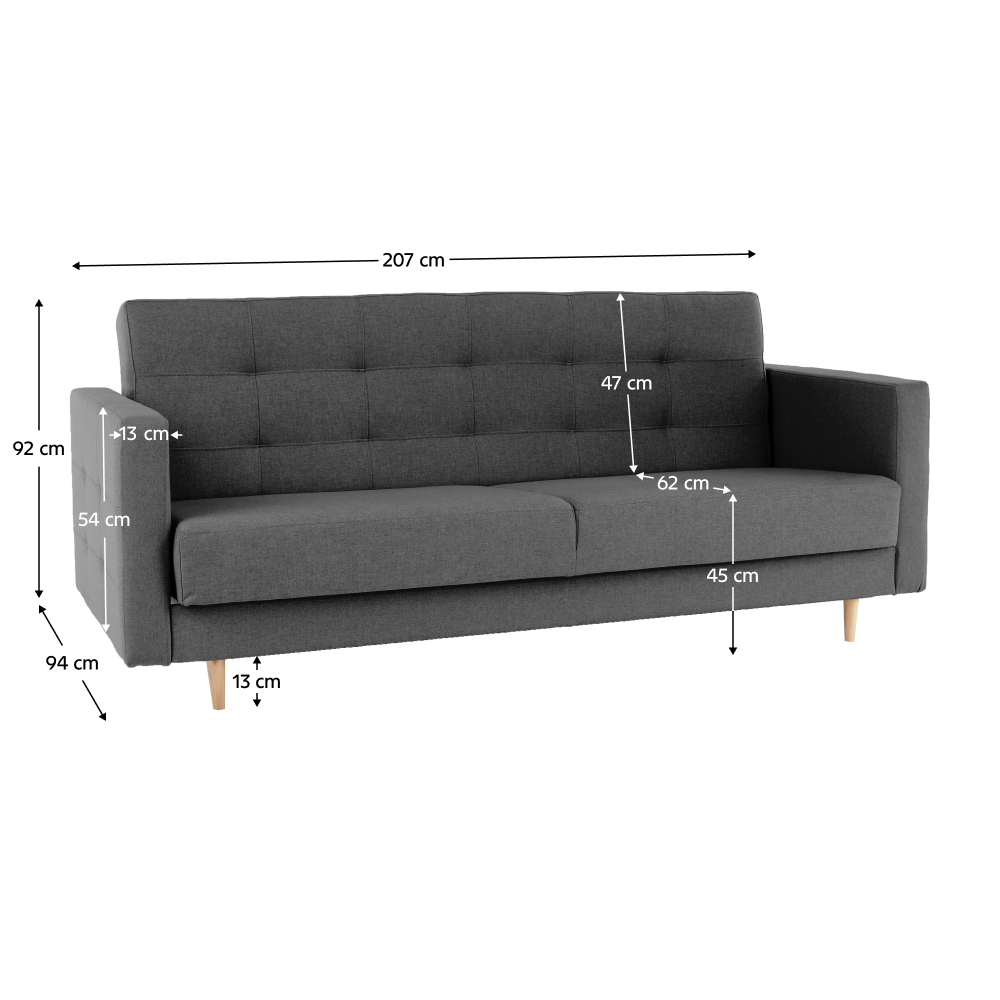 Celočalunený 3-sed, látka tmavosivá, AMEDIA