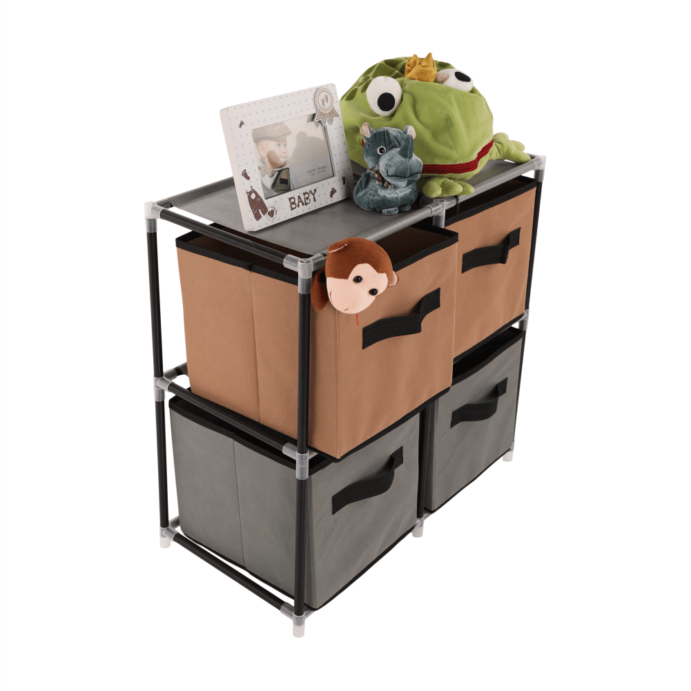 Komoda s látkovými šuplíkmi, čierna/hnedá/sivá, CAMILO TYP 1