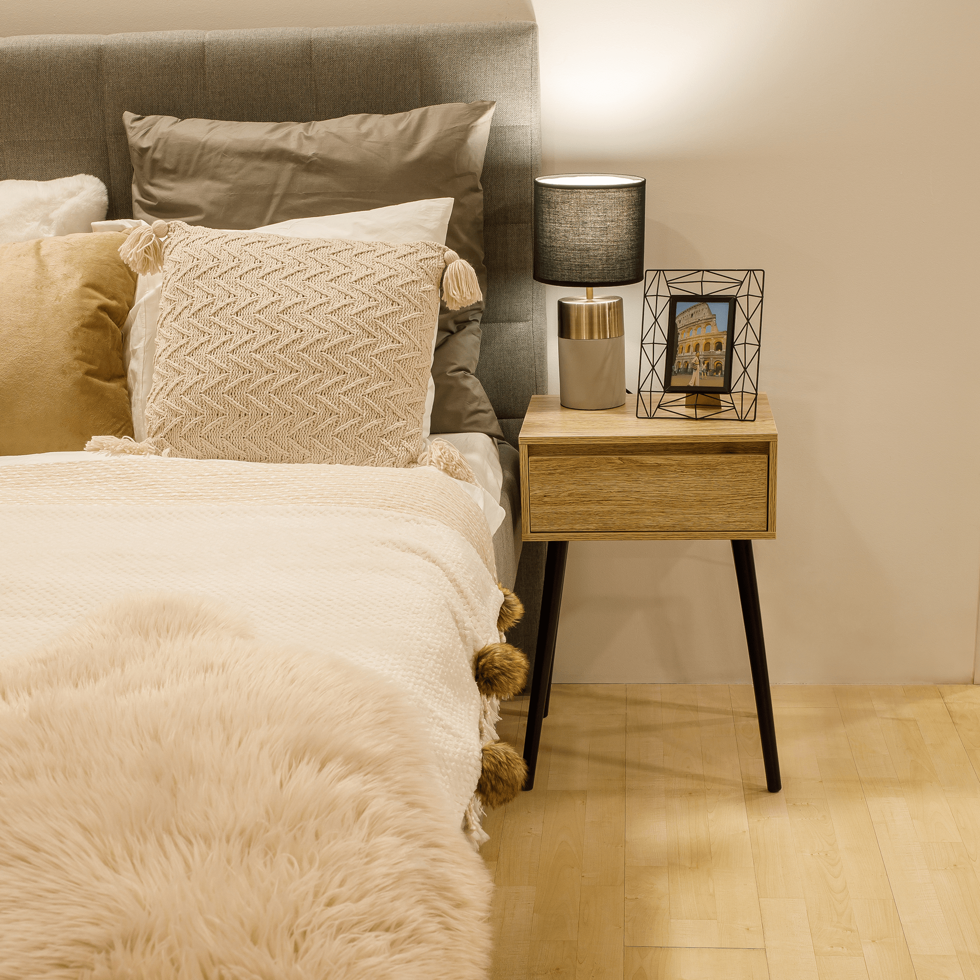 Príručný/nočný stolík, dub/čierna, ALYSANDRA TYP 1