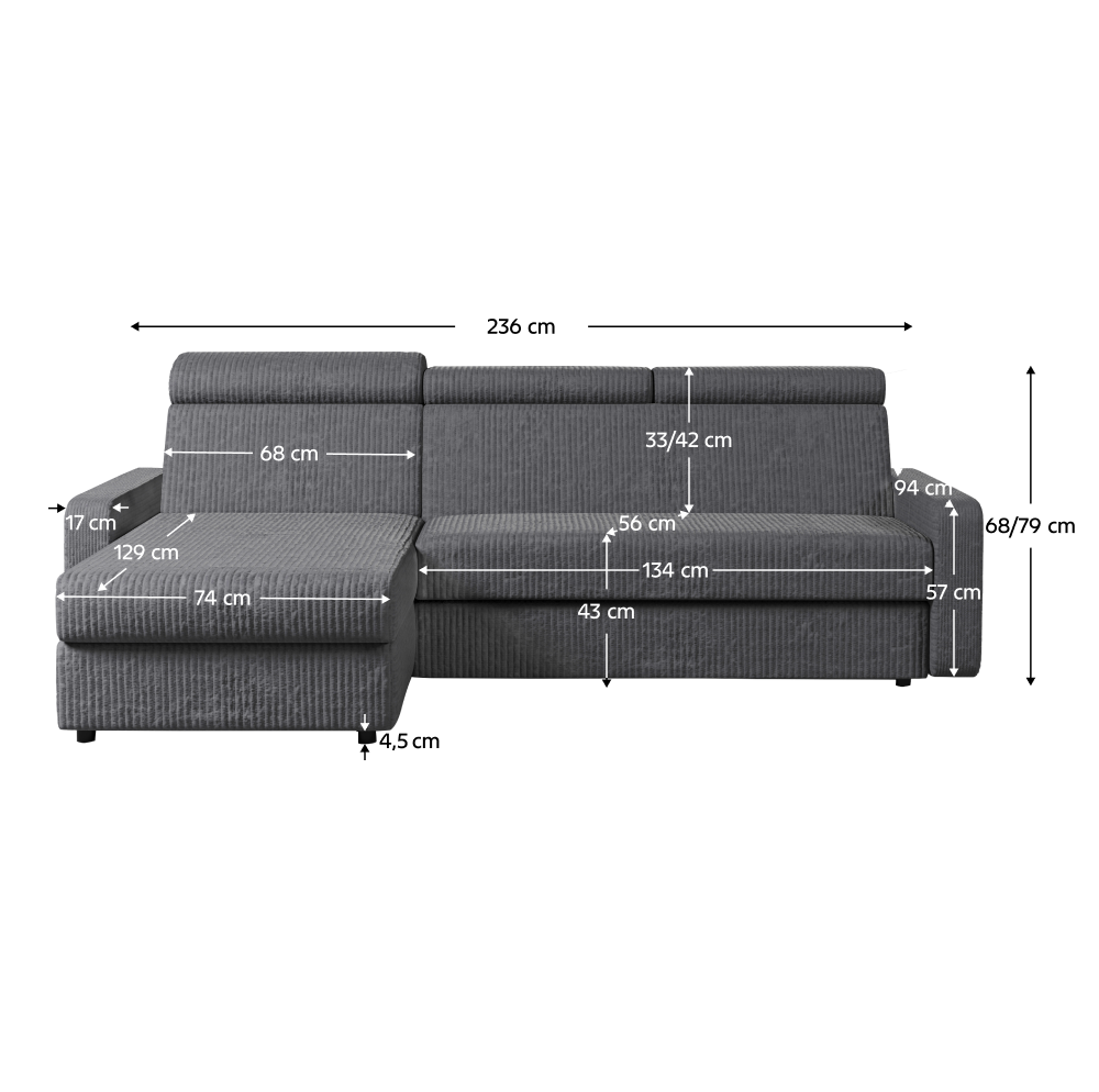 Rozmery (ŠxHxV): 236x170x68/79 cm