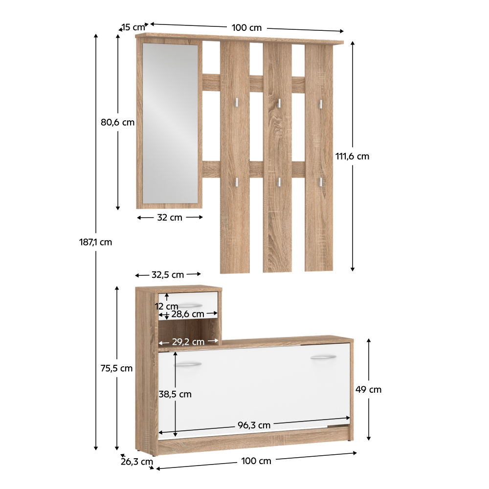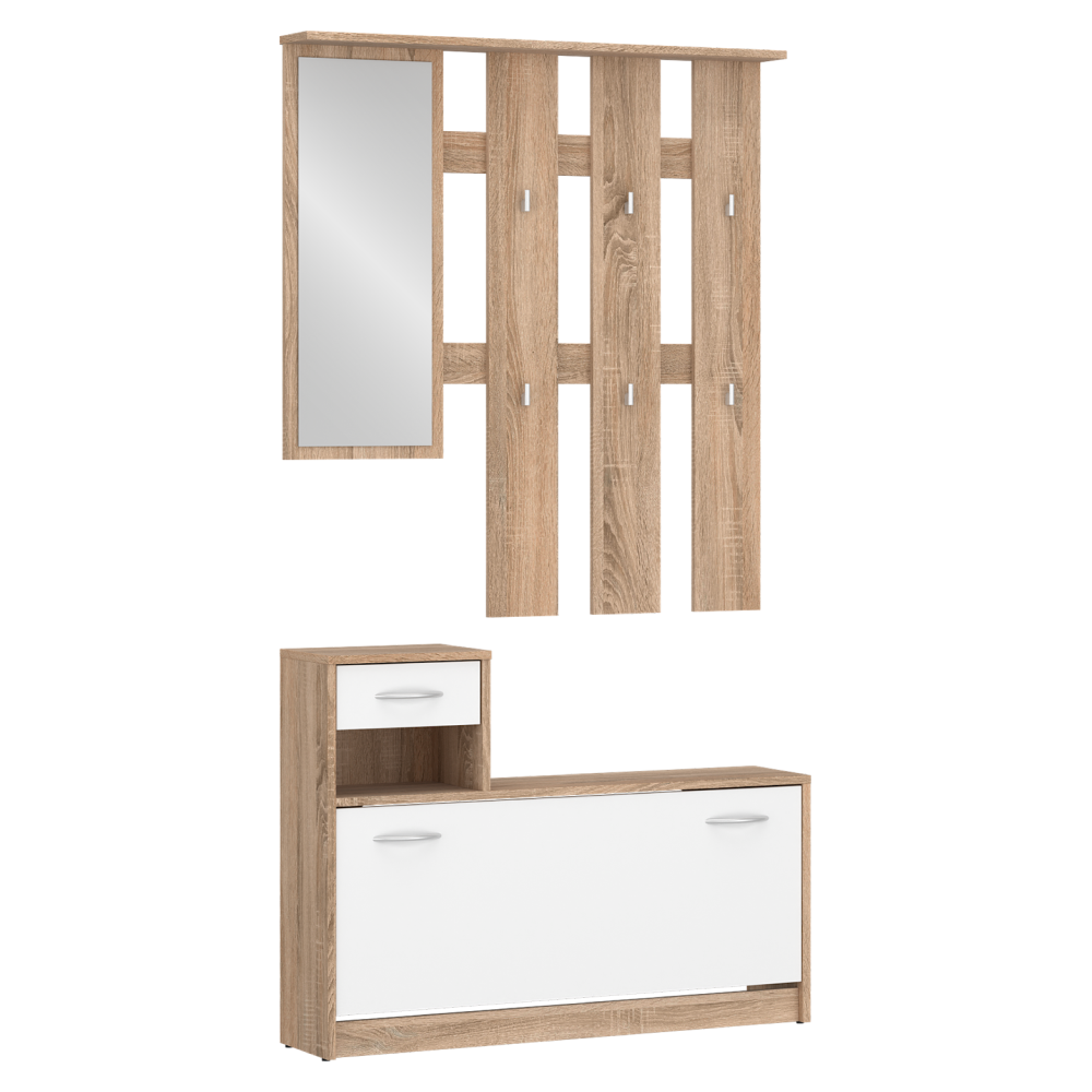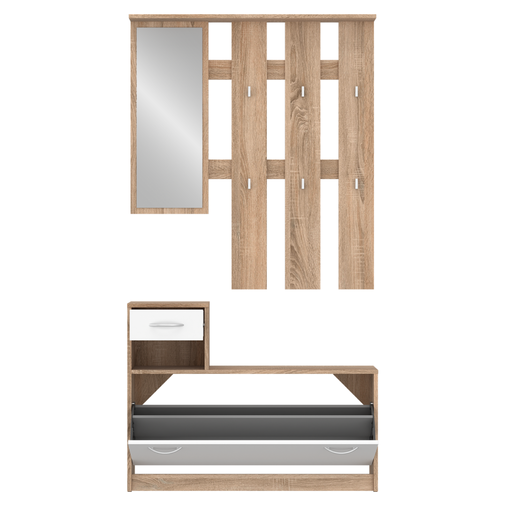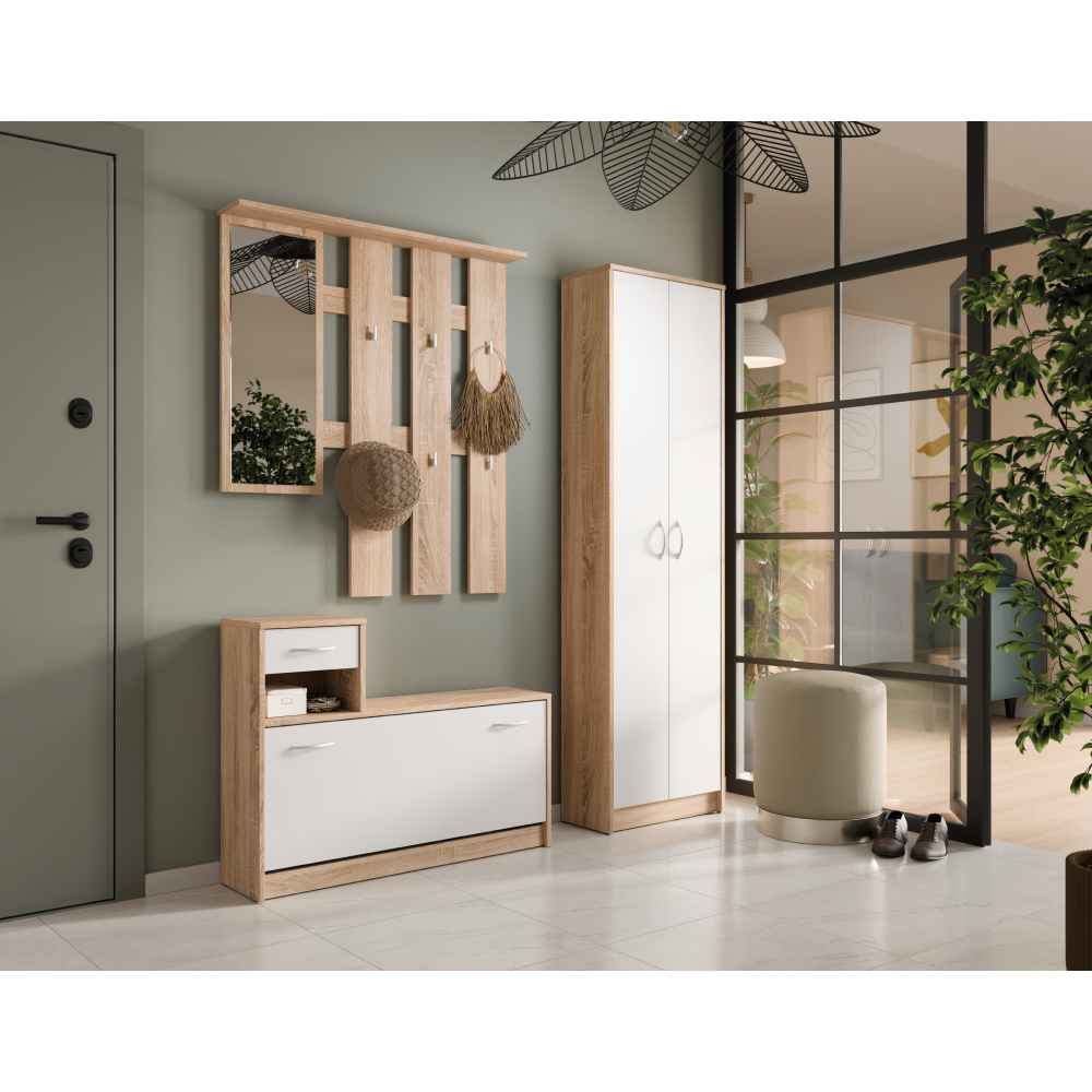 Predsieňová zostava, dub sonoma/biela, VIRA-MECKI NEW