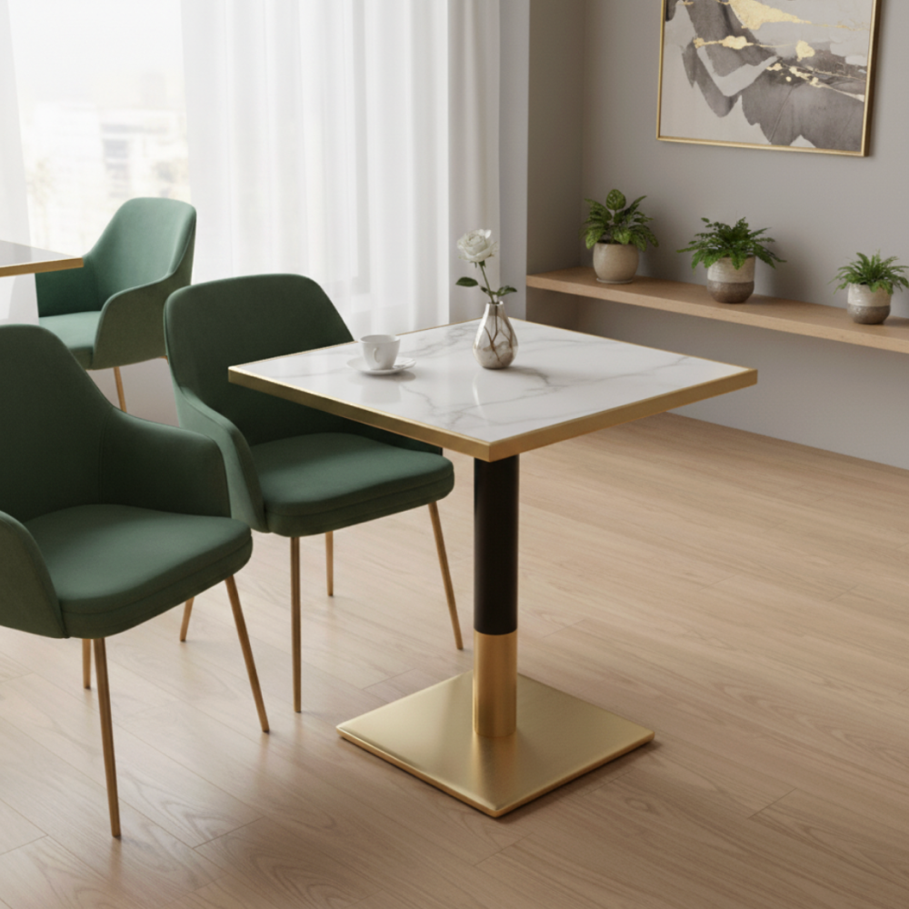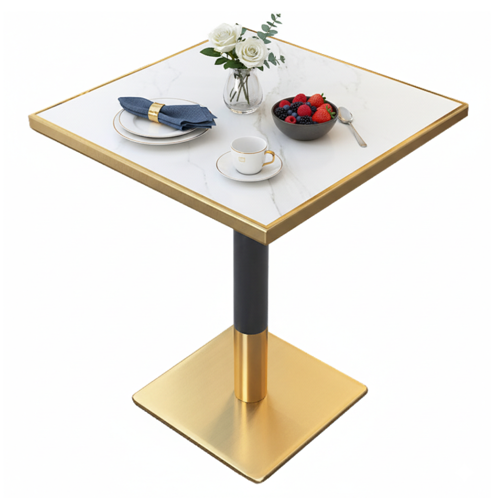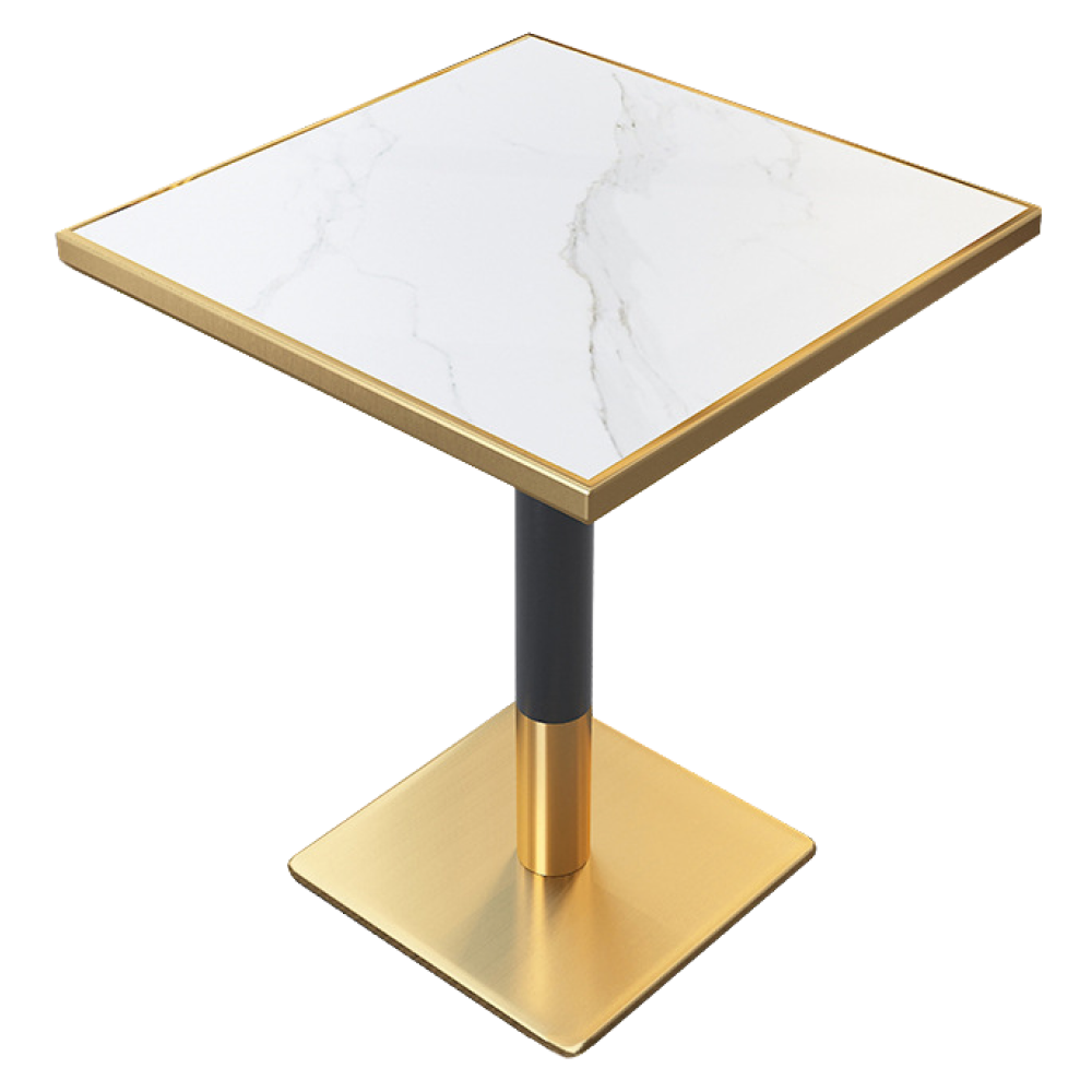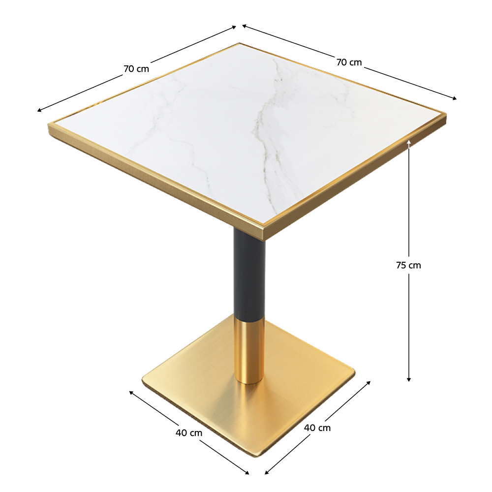Jedálenský bistro stôl, biely mramor/čierna/zlatá, 70x70 cm, PRESTON