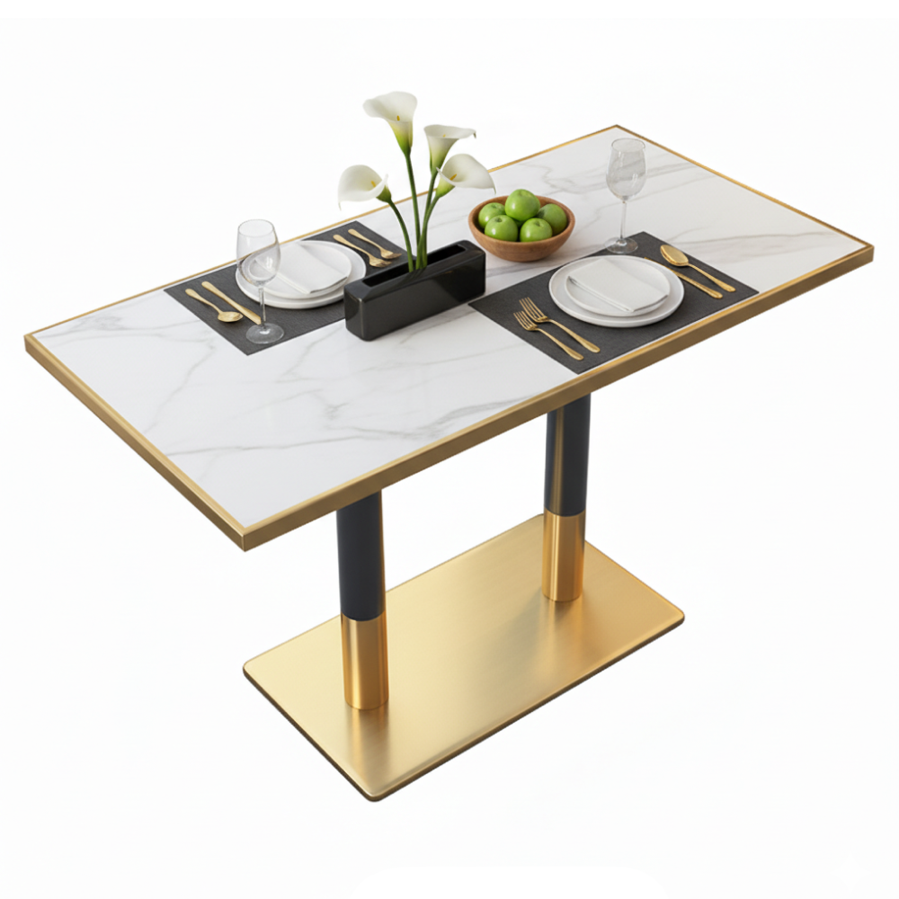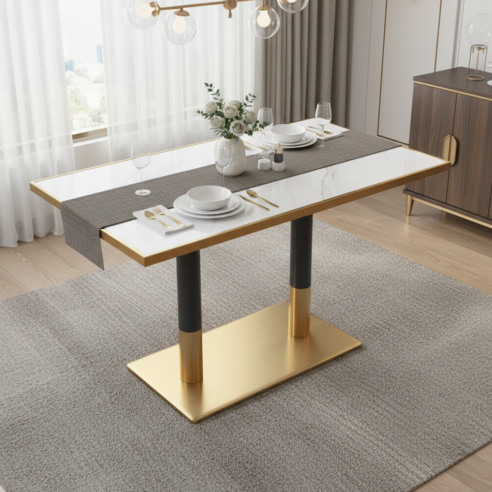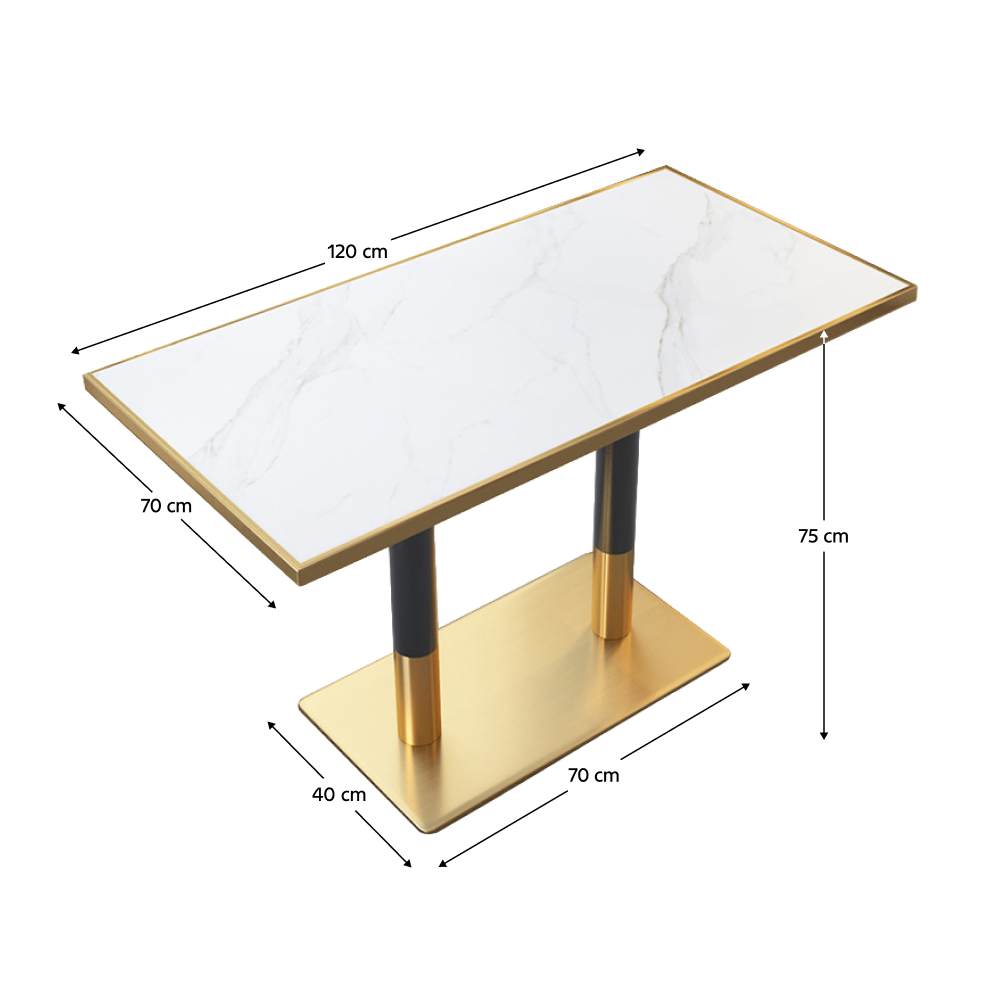 Jedálenský bistro stôl, biely mramor/čierna/zlatá, 120x70 cm, DARIAN