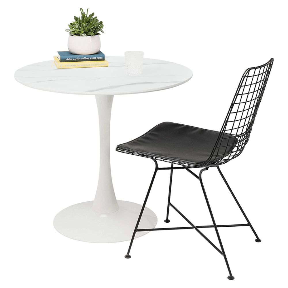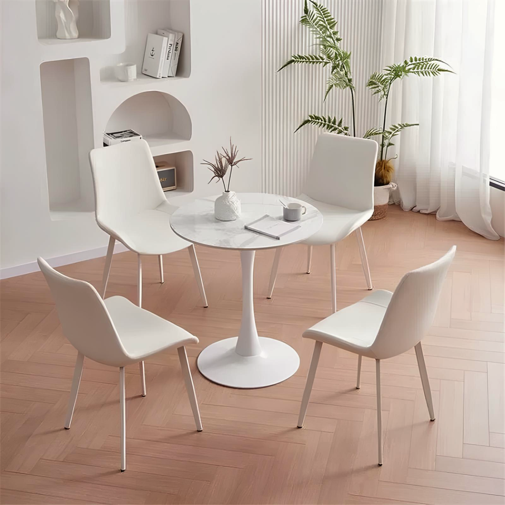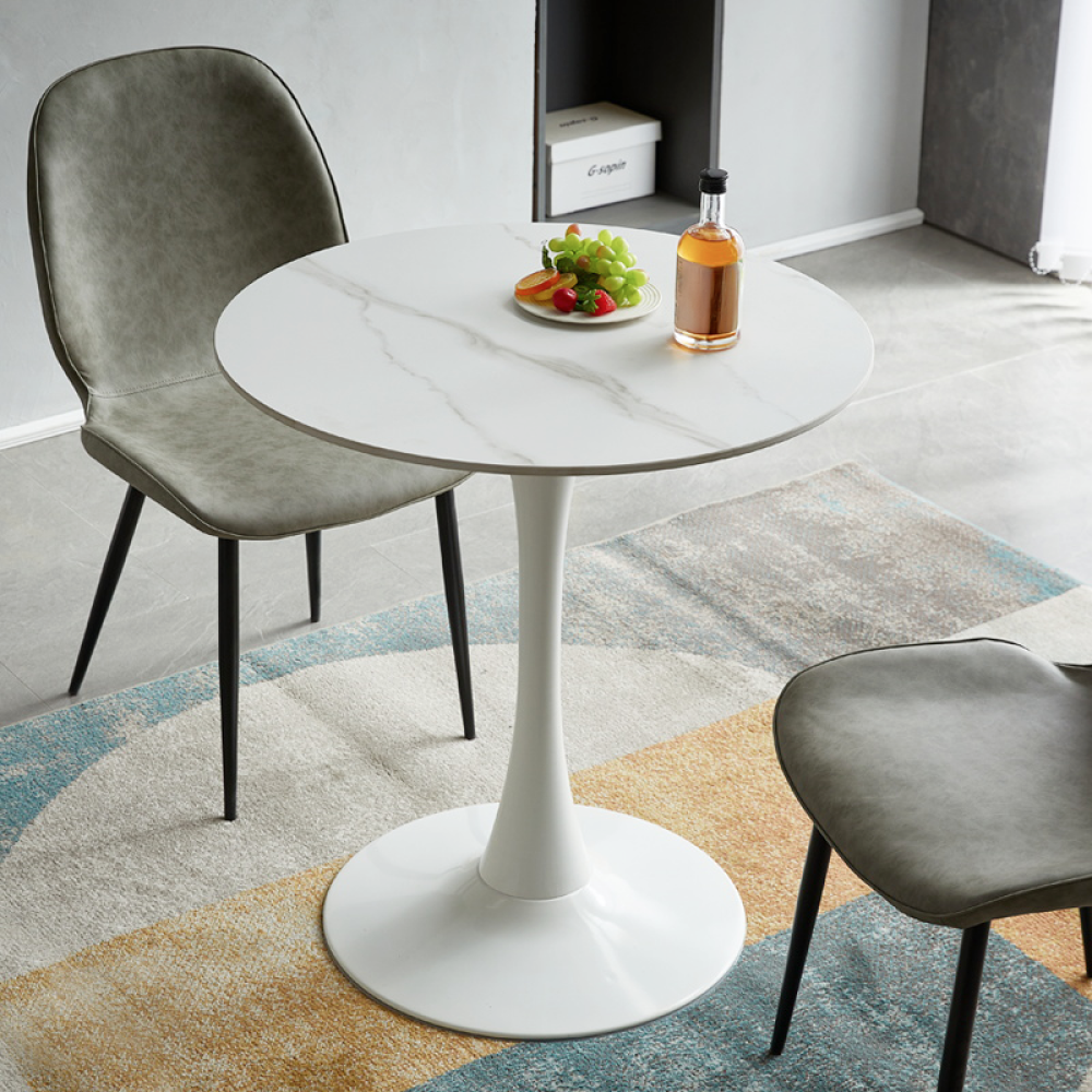 Jedálenský stôl, svetlý mramor/biela, priemer 80 cm, LORIAN