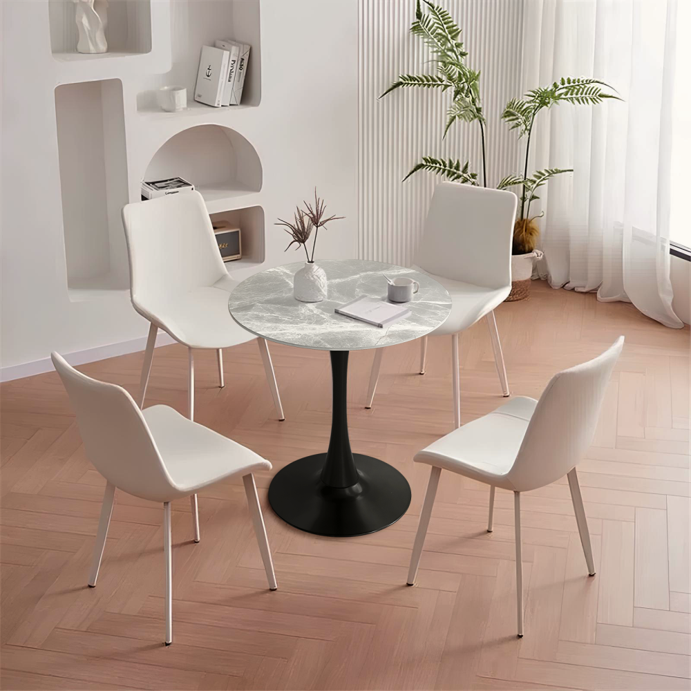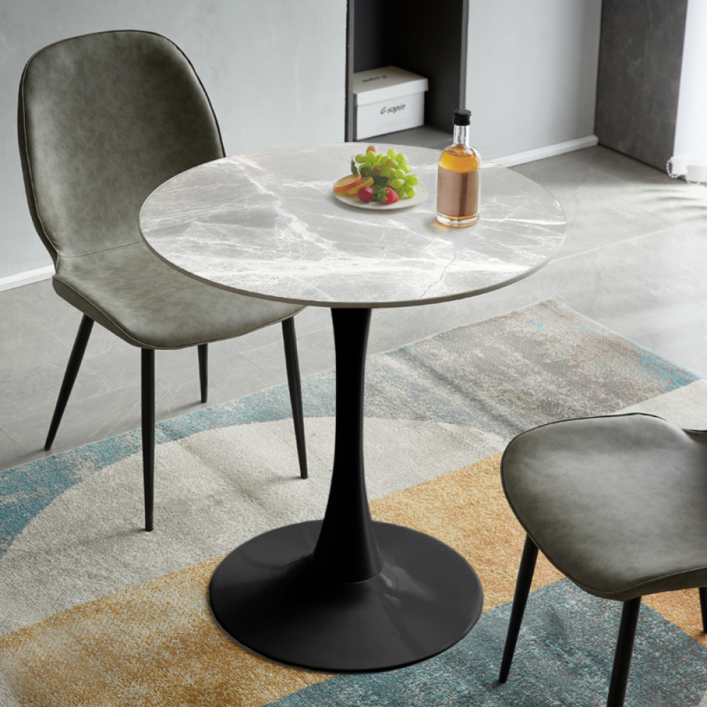 Jedálenský stôl, sivý mramor/čierna, priemer 90 cm, LORIAN TYP 1