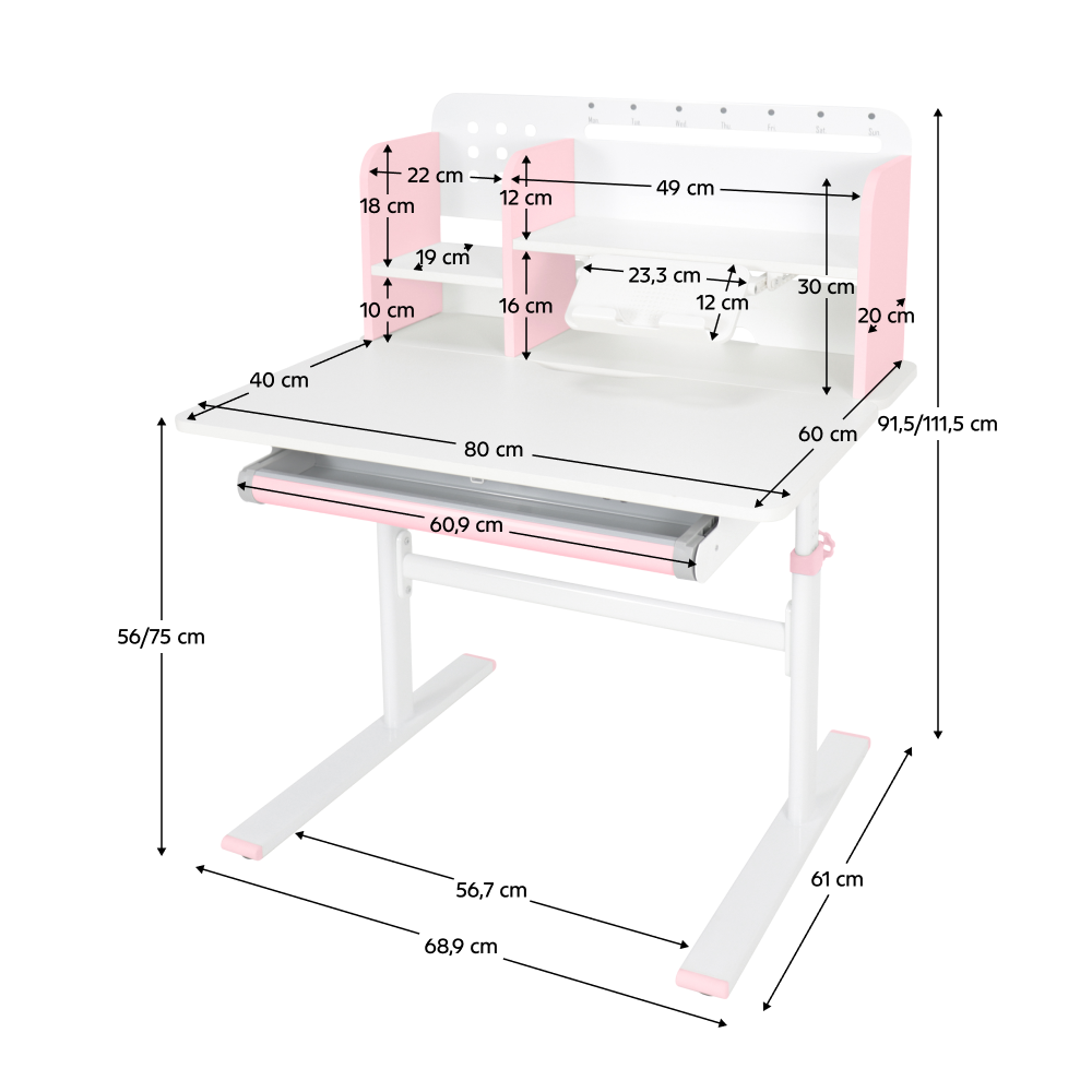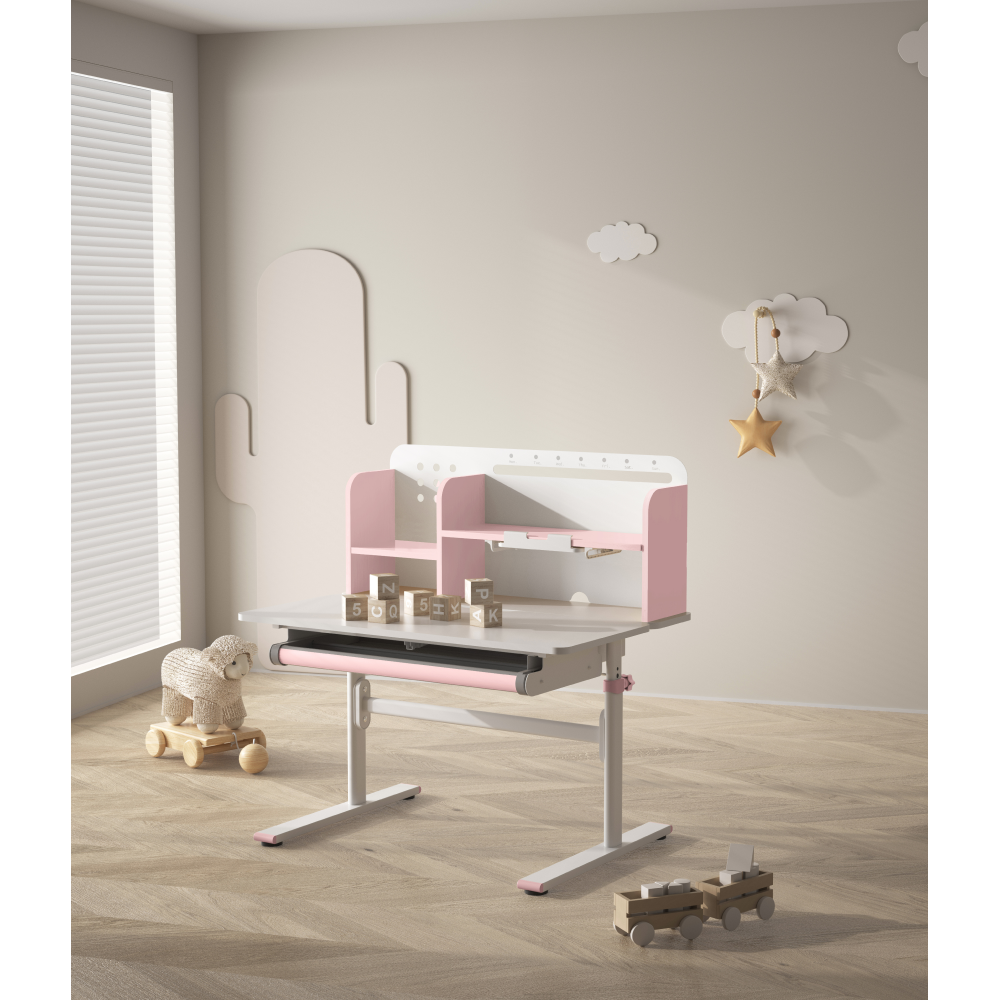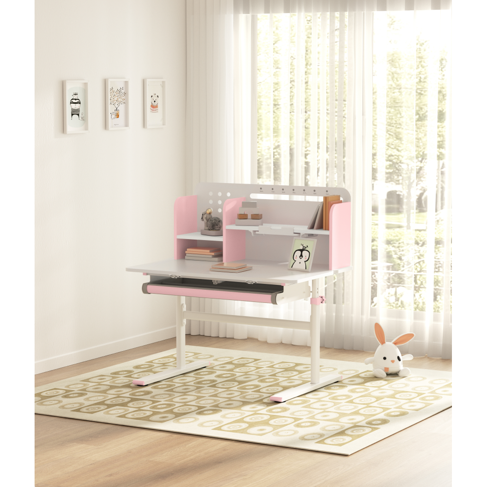 Rastúci písací stôl, ružová/biela, ADAN