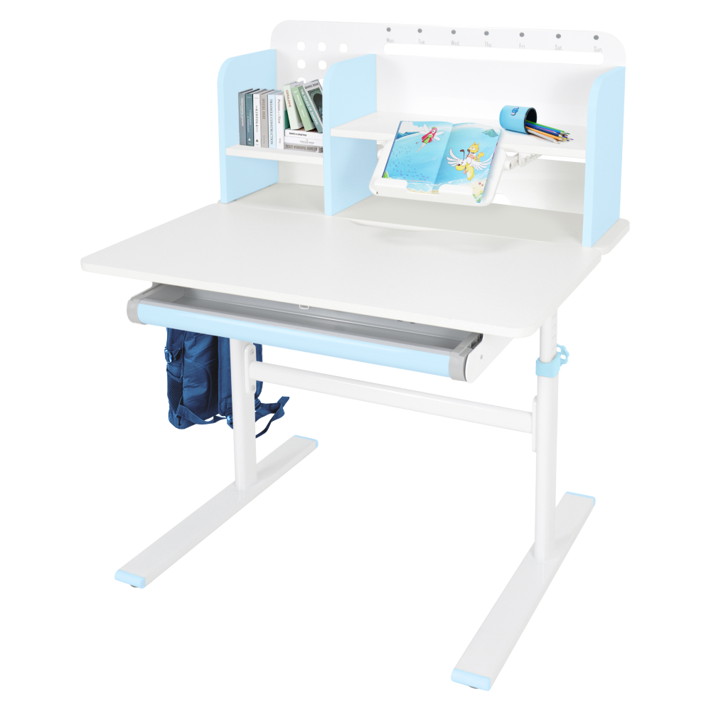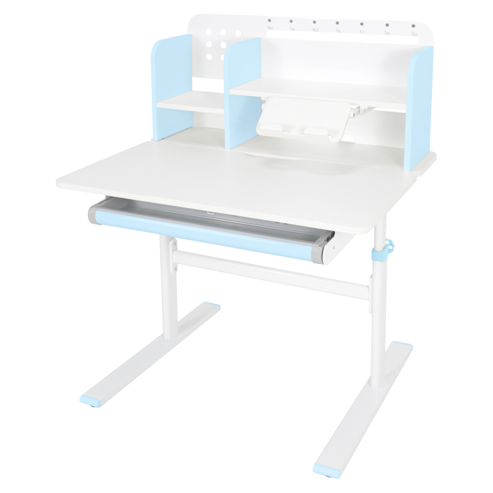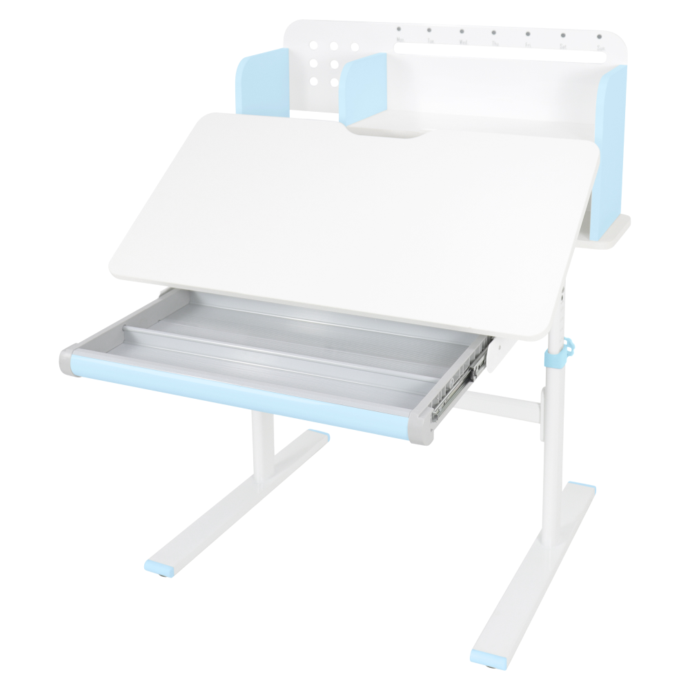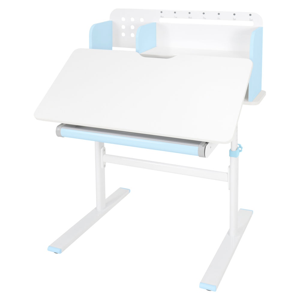 Rastúci písací stôl, modrá/biela, ADAN
