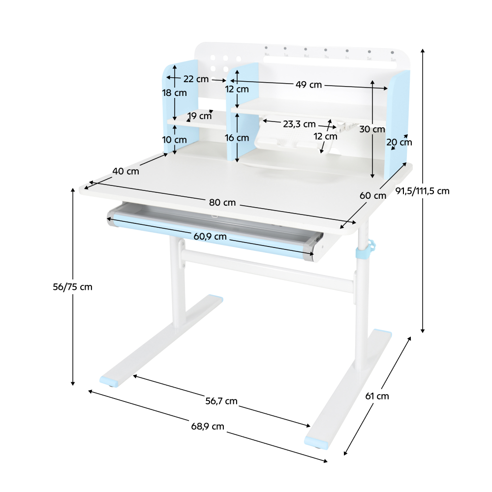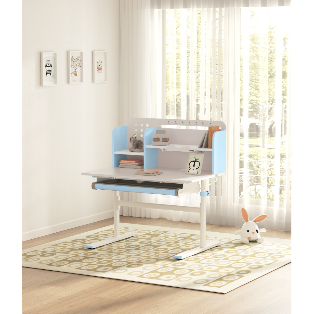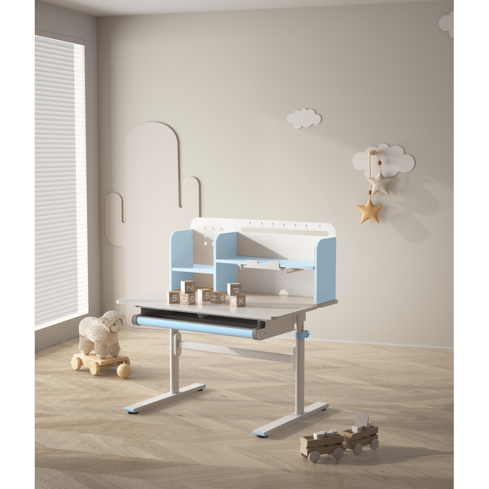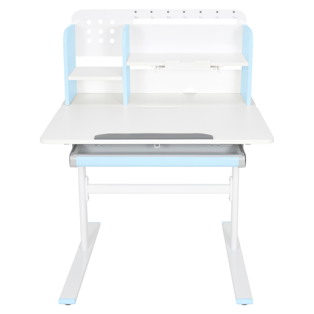 Rastúci písací stôl, modrá/biela, ADAN
