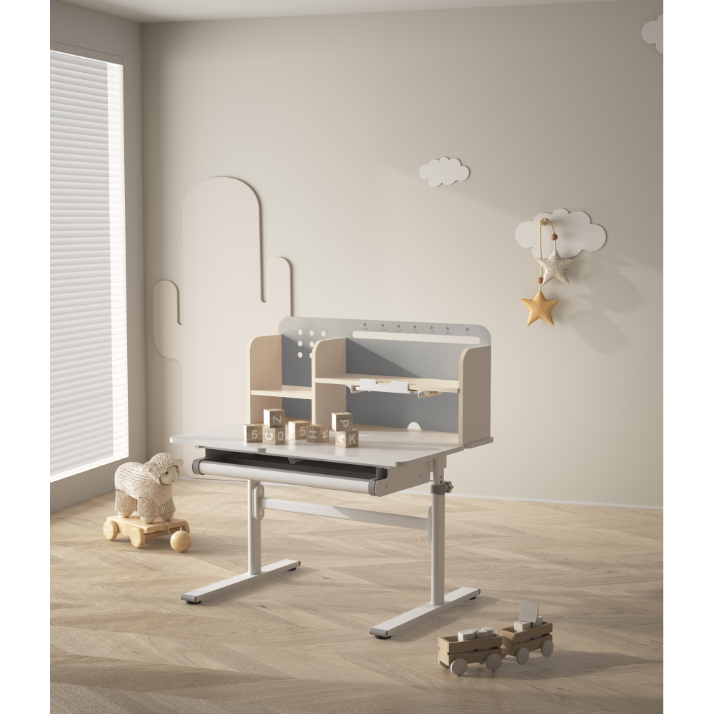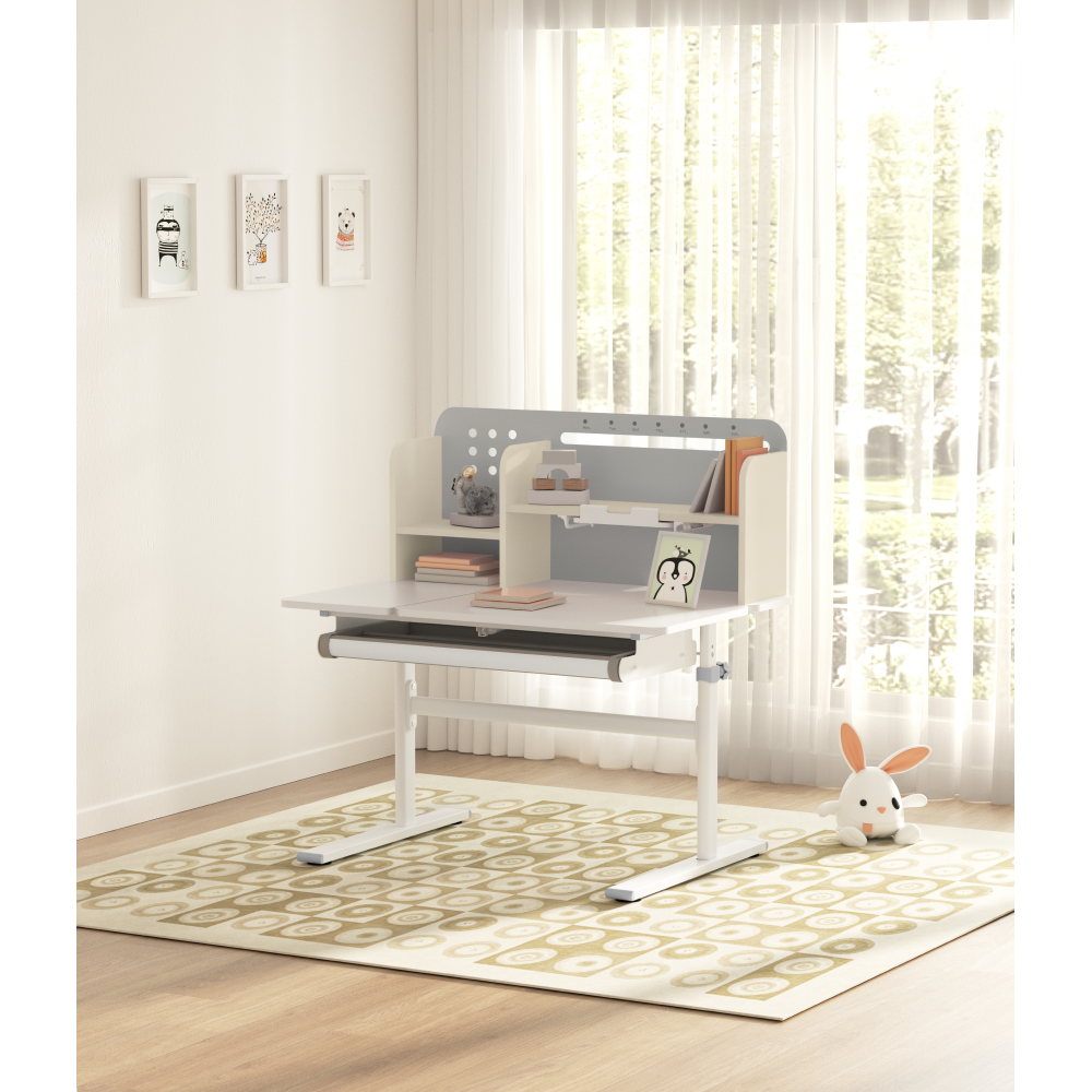 Rastúci písací stôl, sivá/biela, ODIN