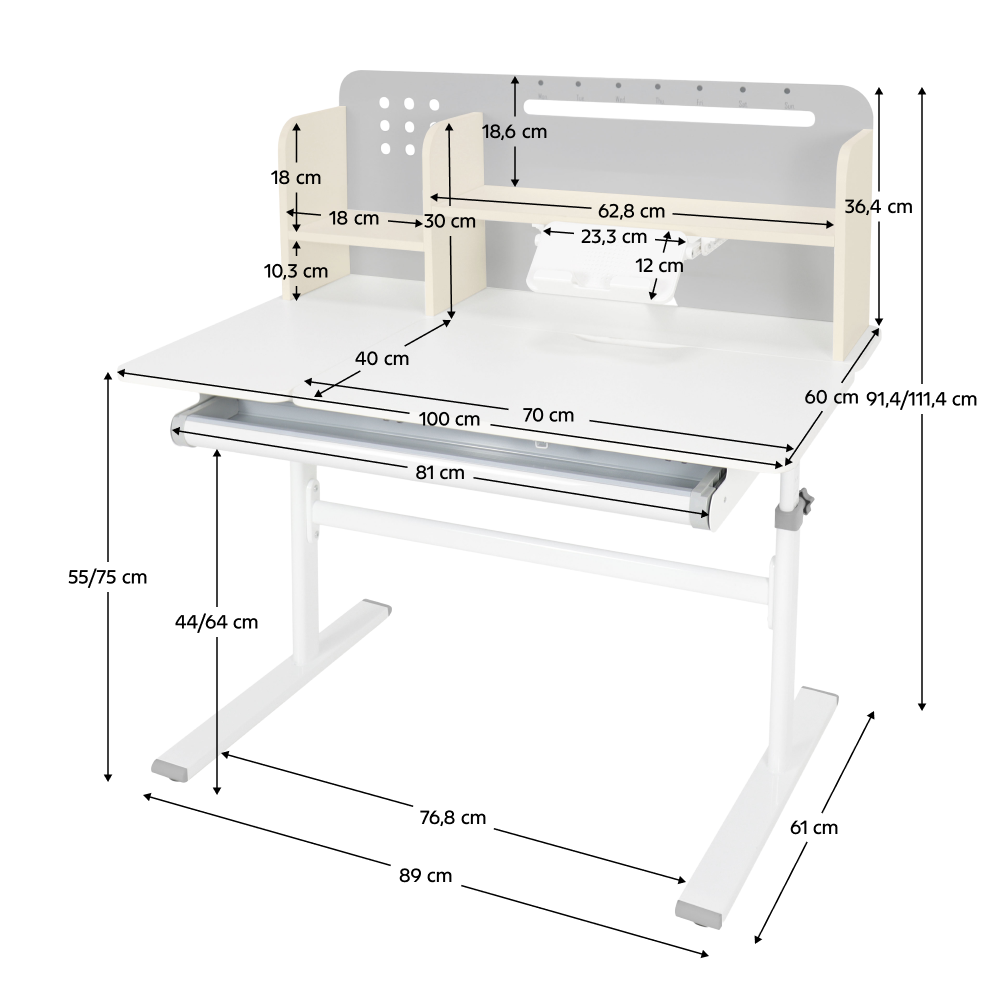Hĺbka polohovacej dosky stola: 40 cm