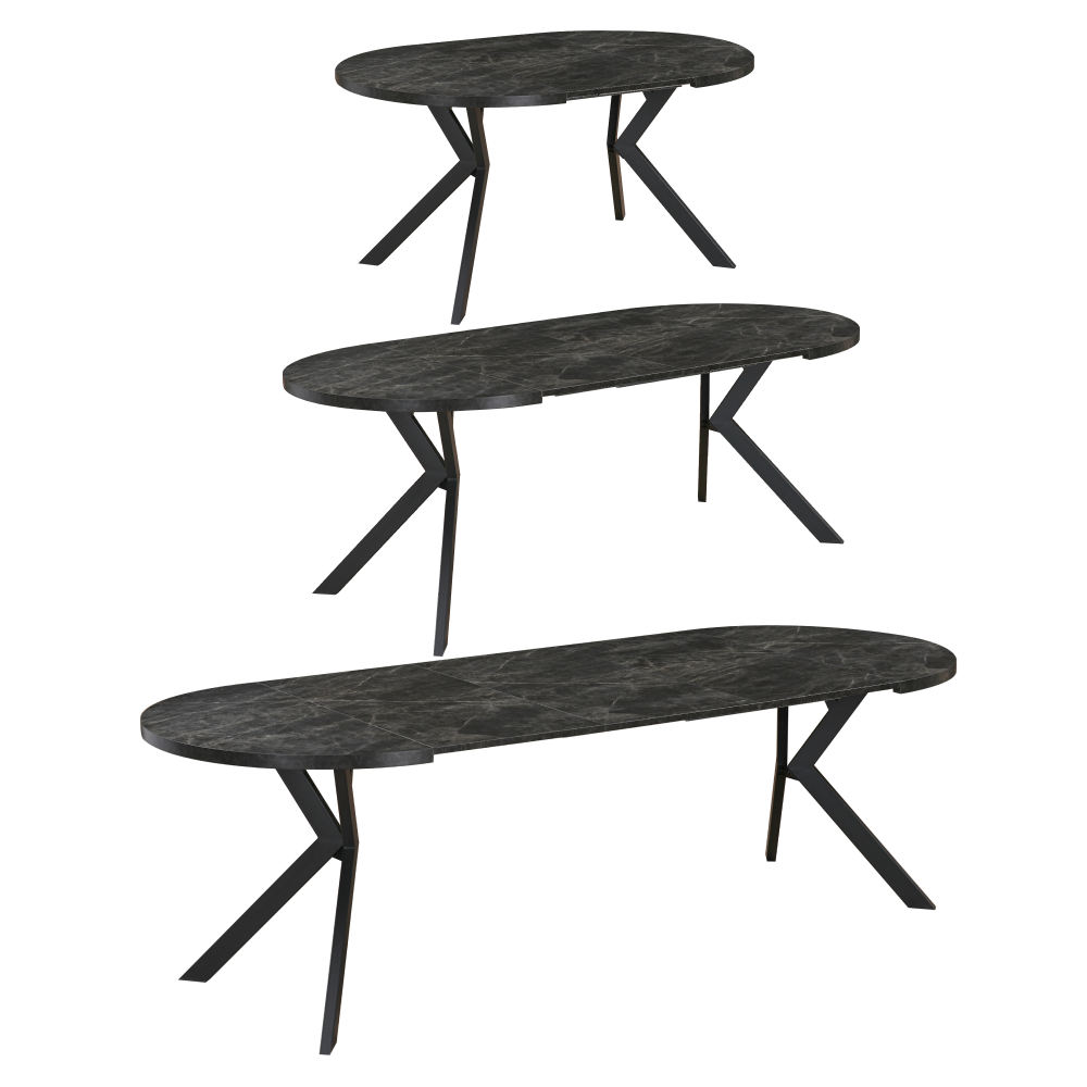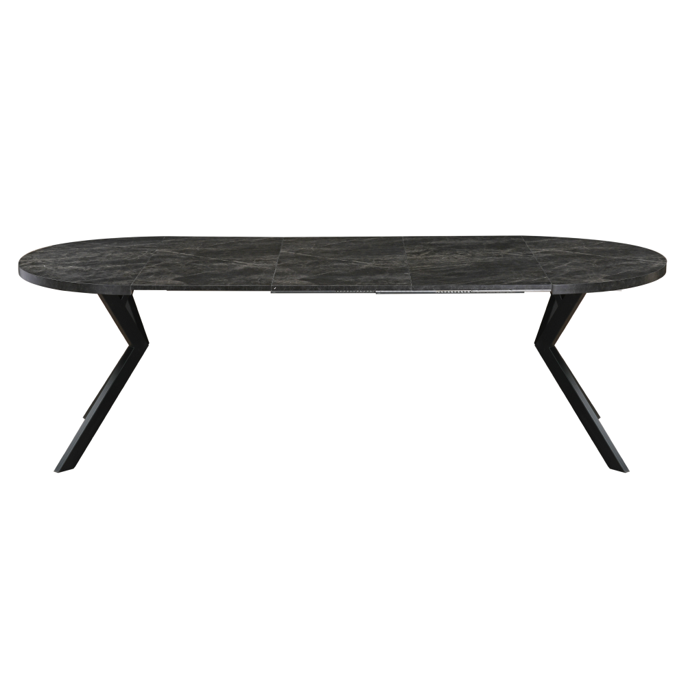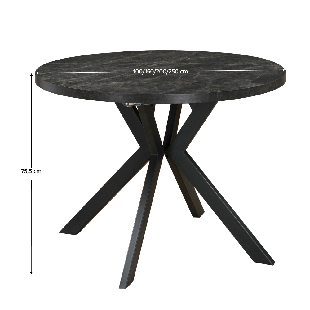 Jedálenský rozkladací stôl, betón tmavý/čierna, 100-250x75,5 cm, LUKOS
