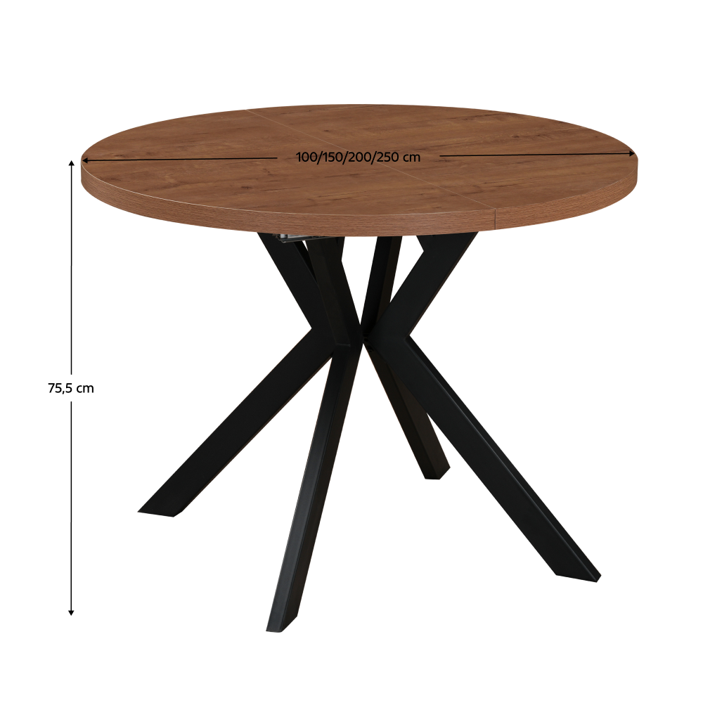 Jedálenský rozkladací stôl, dub tmavý/čierna, 100-250x75,5 cm, LUKOS