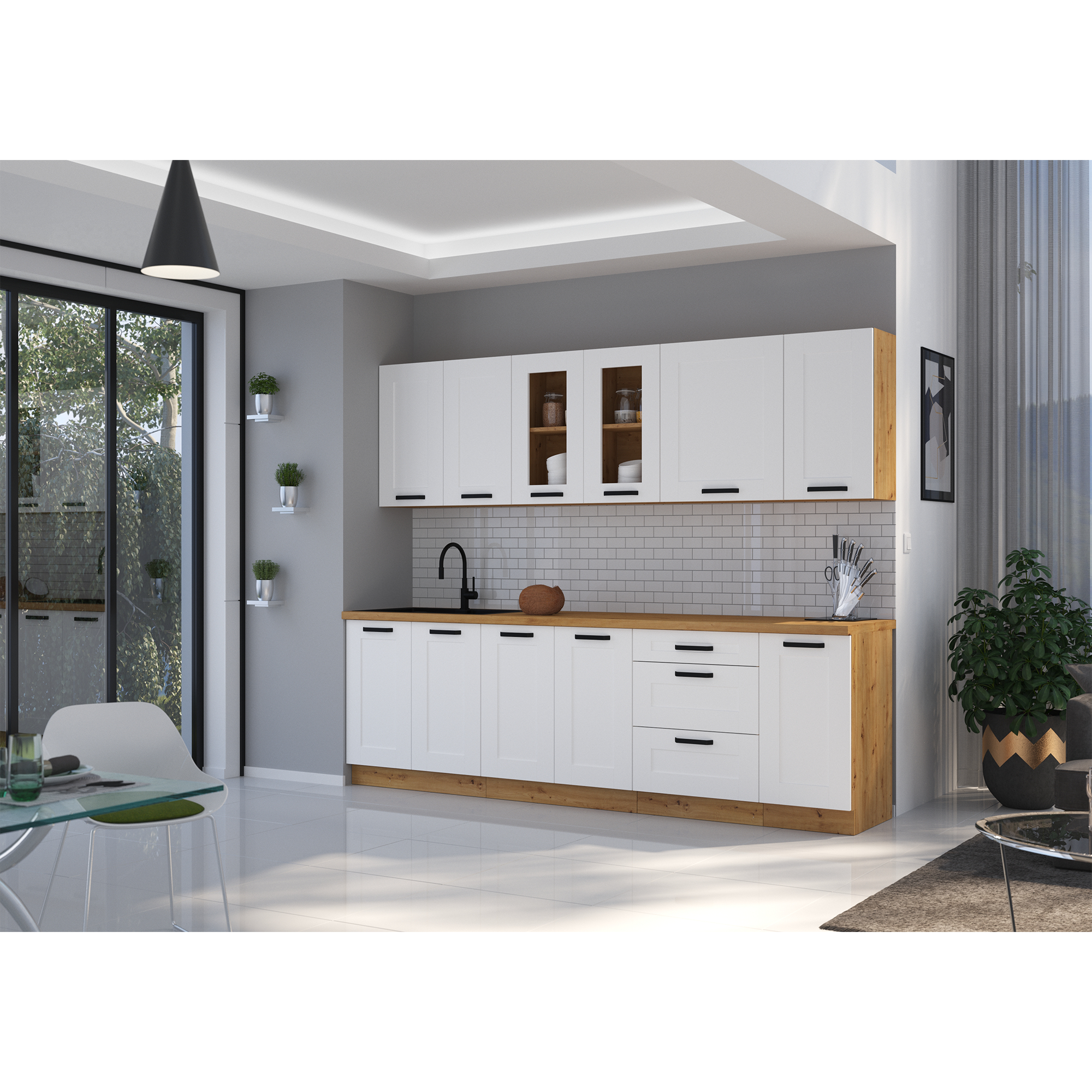 Spodné skrinky sú dodávané vrátane dolnej lišty, bez pracovnej dosky.