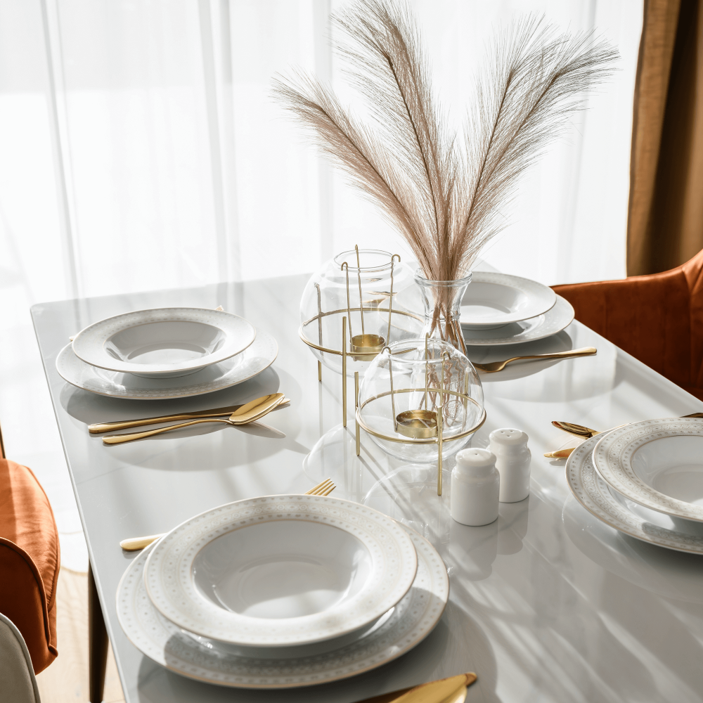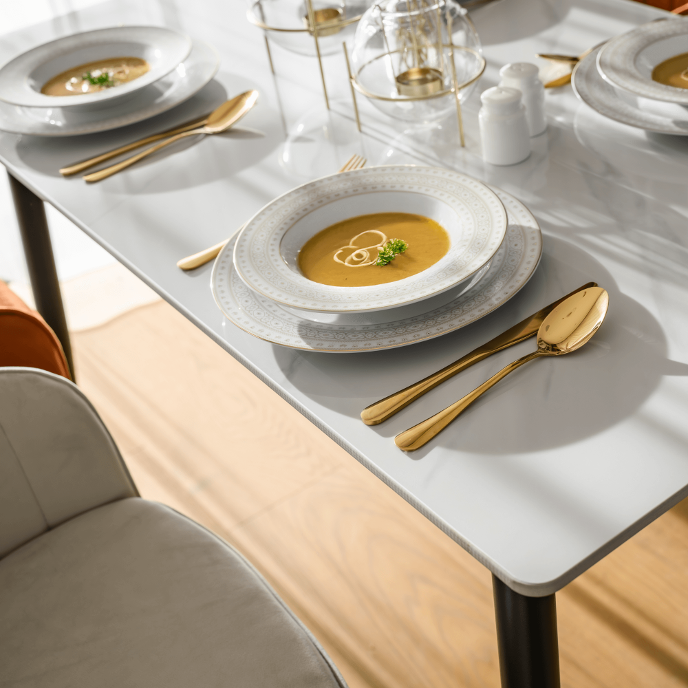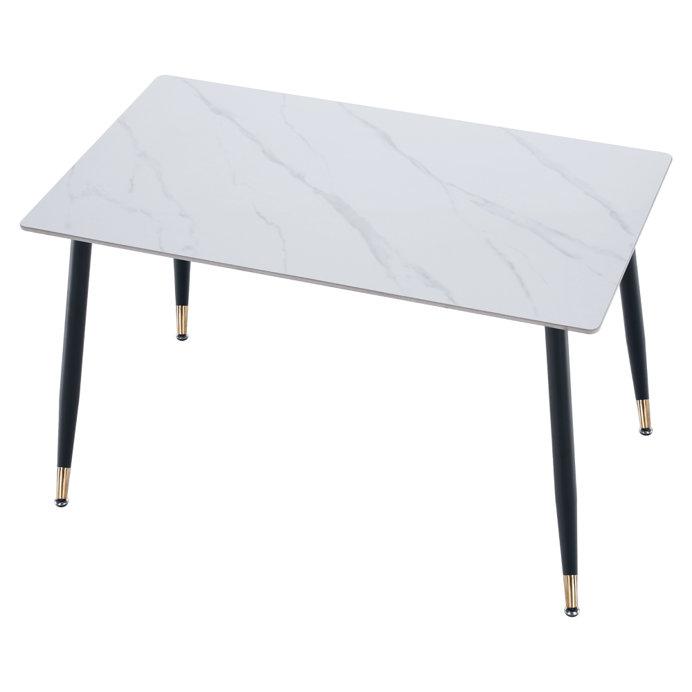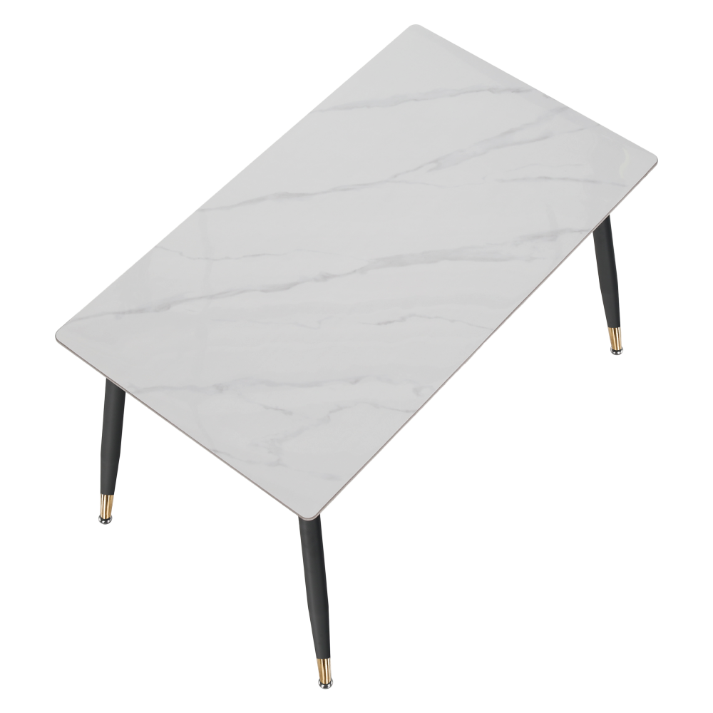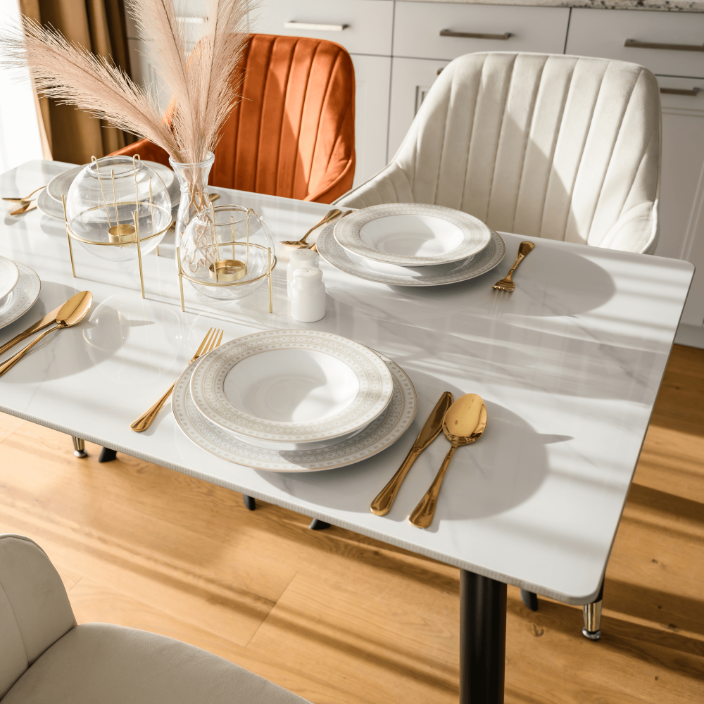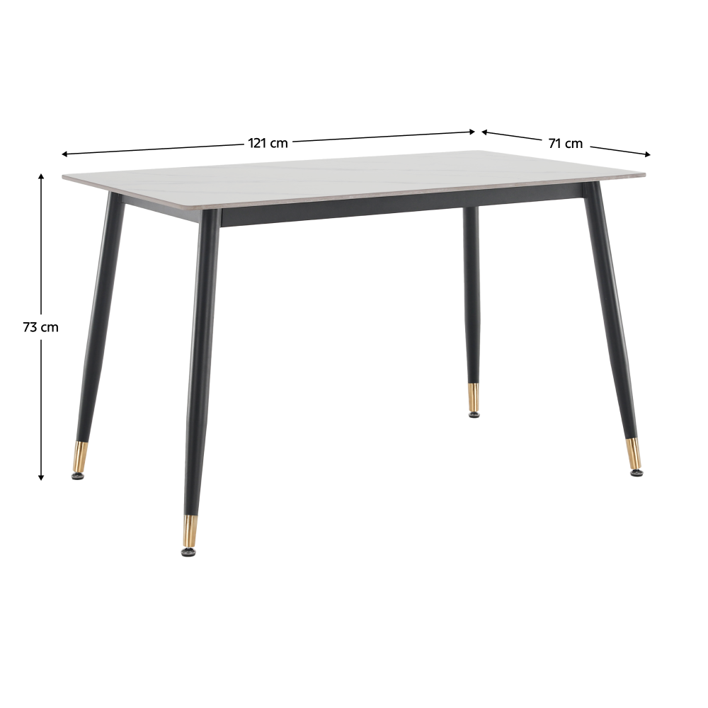 Jedálenský stôl, biely mramor/čierna/zlatá, 121x71 cm, FLORENC TYP 1