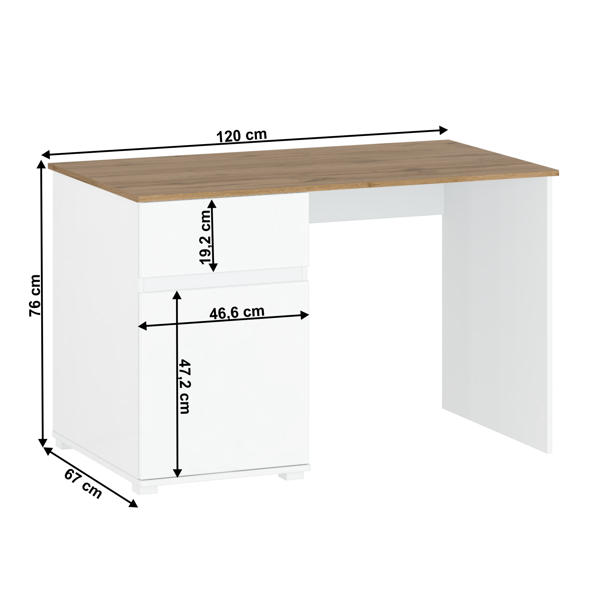 PC stôl 1D1S/120, biely lesk/dub wotan, VILGO