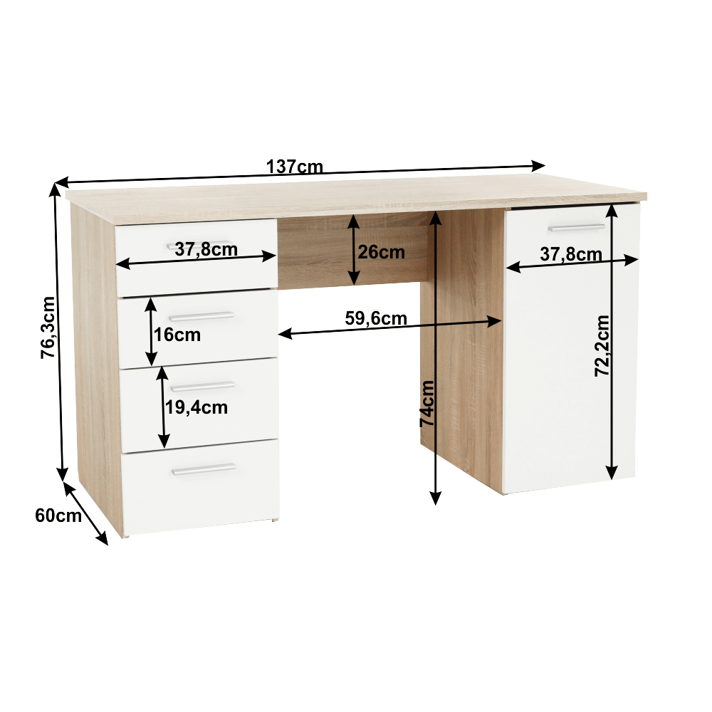 Písací stôl, dub sonoma/biela, EUSTACH