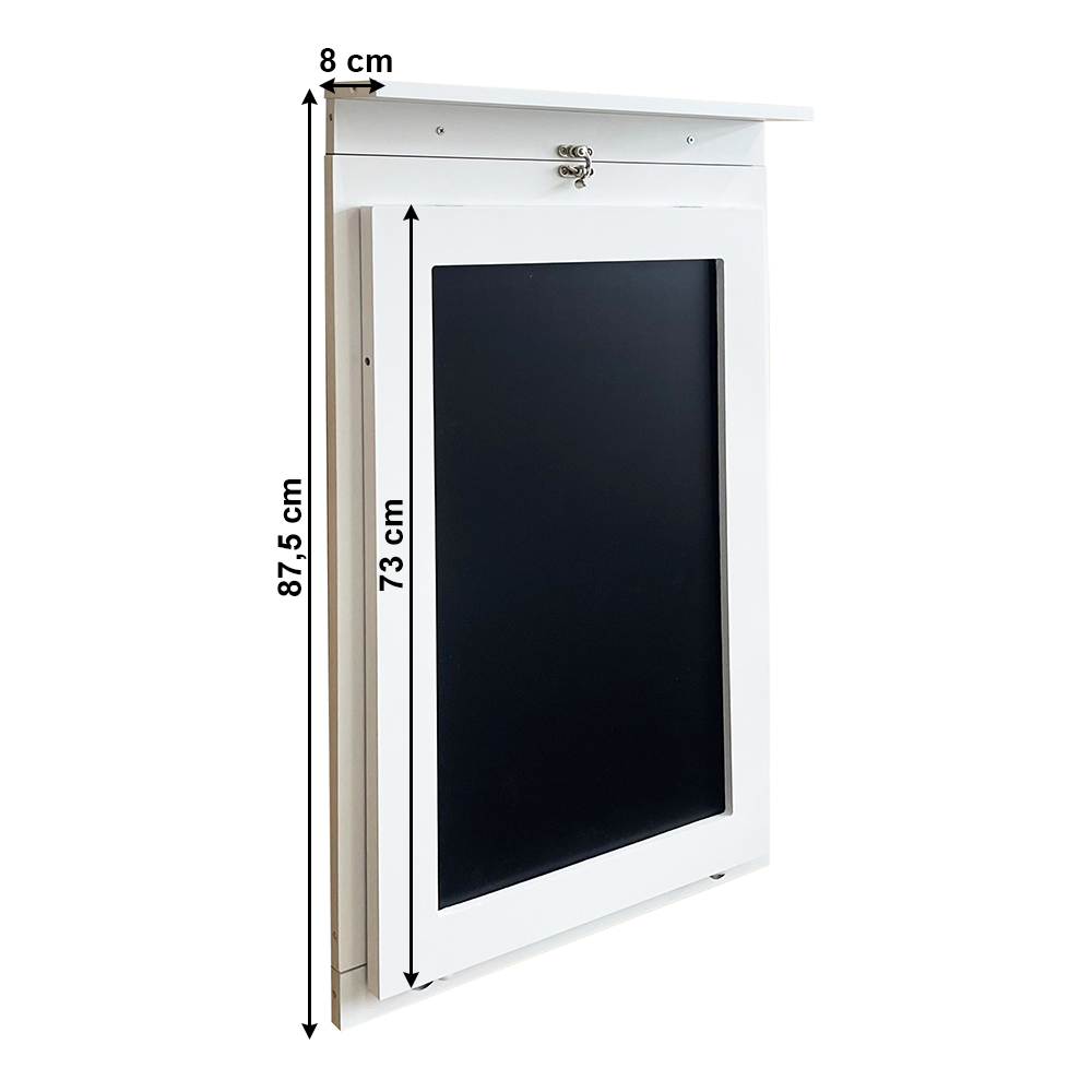 Skladací stôl na stenu, s kriedovou tabuľou, biela, ZALMAN