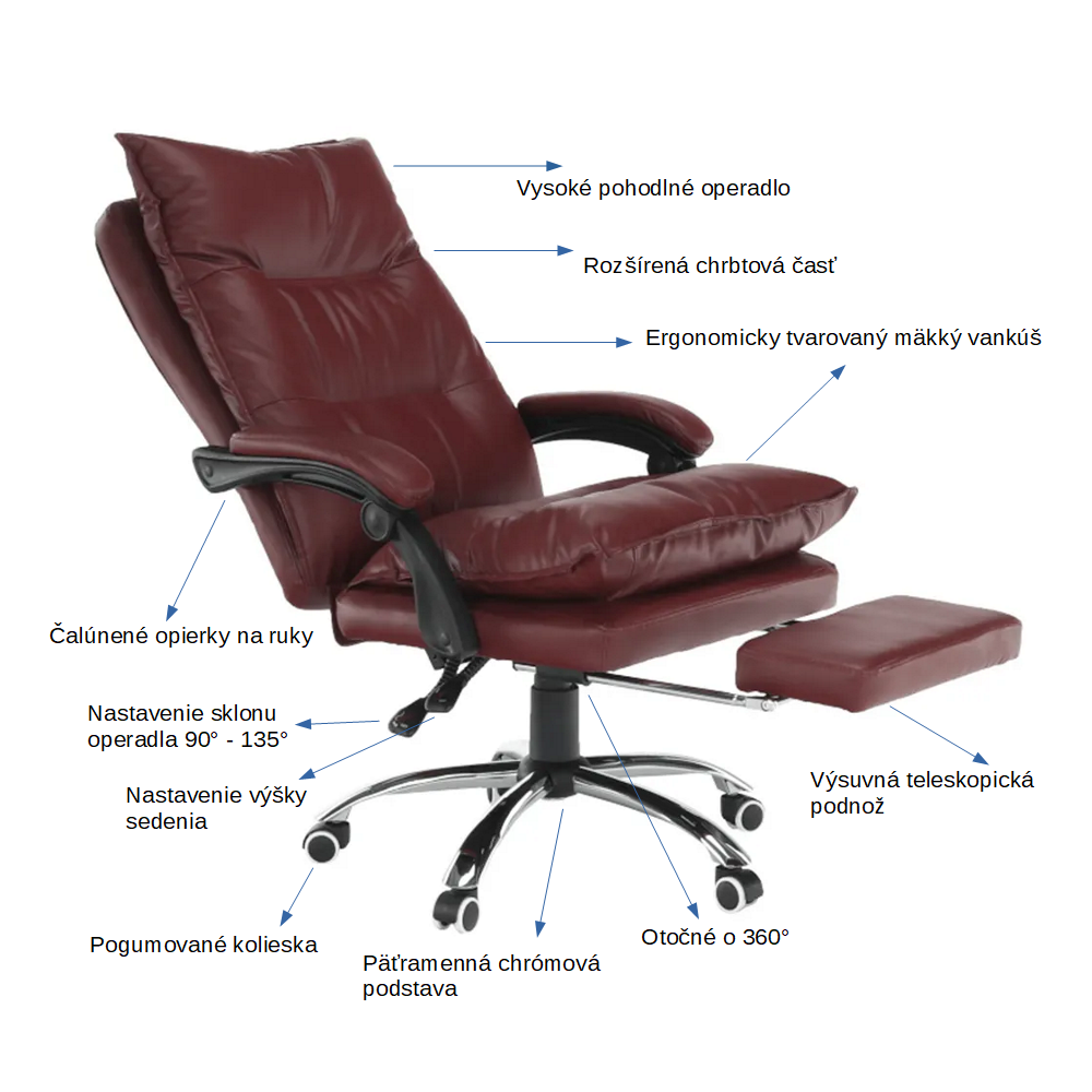 Kancelárske kreslo s podnožou, ekokoža bordová, DRAKE