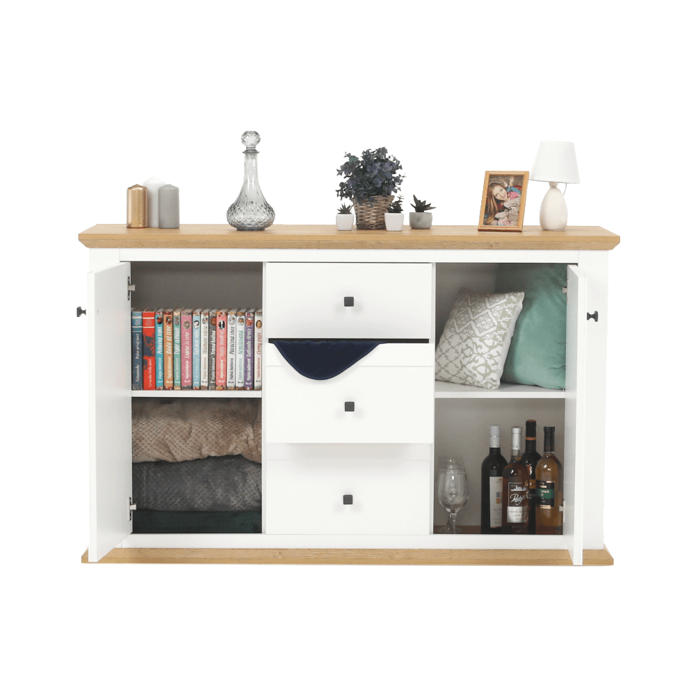 Komoda MZ11, biela/dub grand, LEON