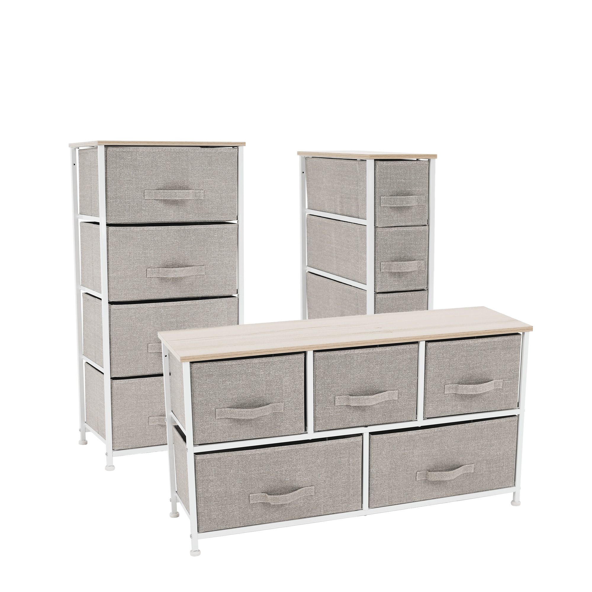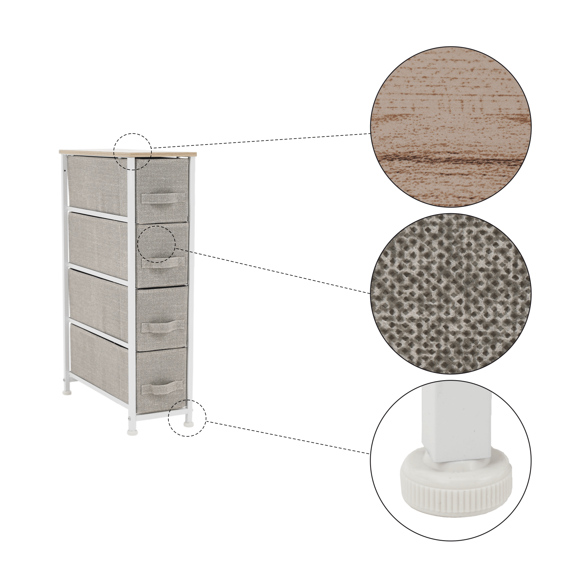 Komoda s látkovými šuplíkmi, svetlosivá/biela/béžová, OFELIA TYP 2
