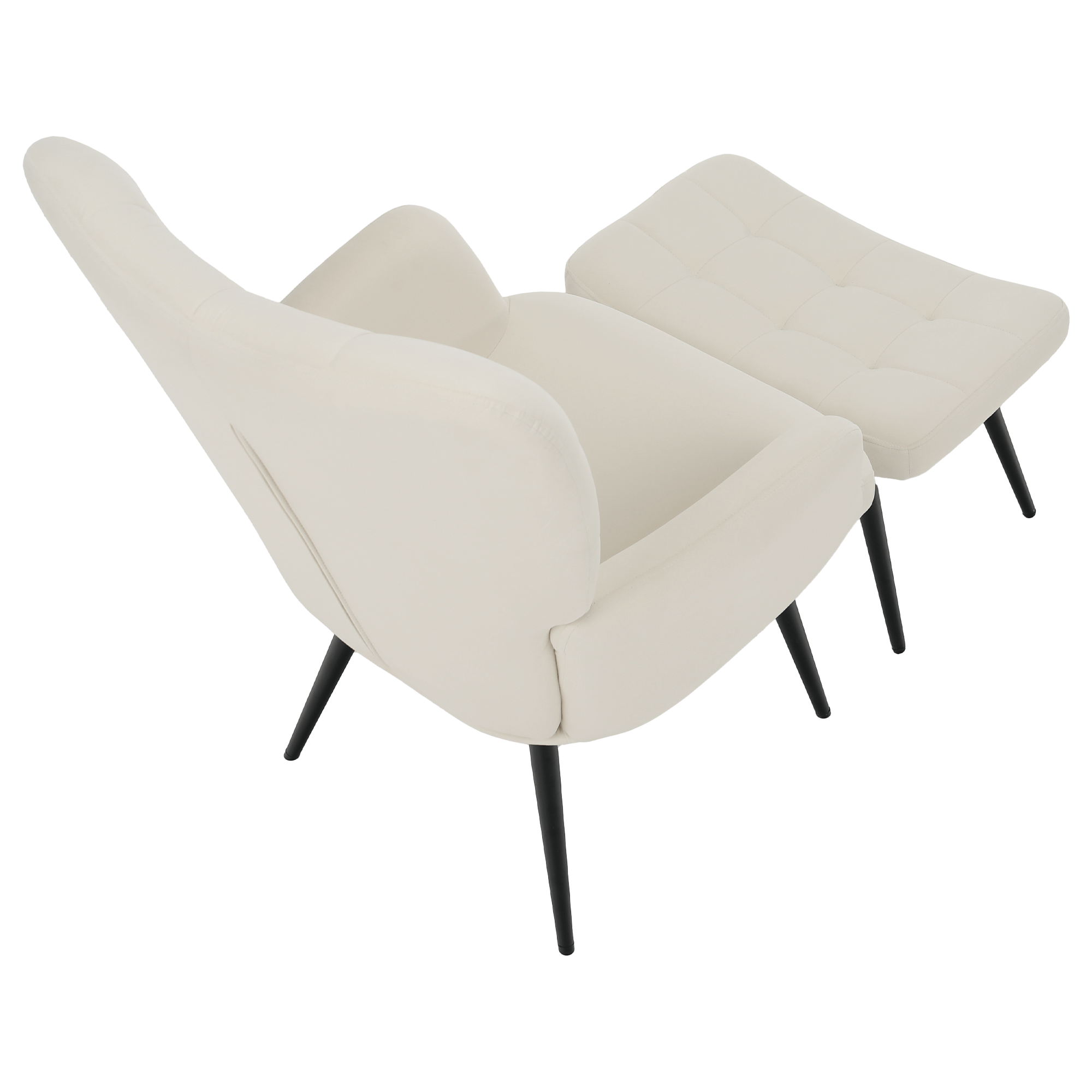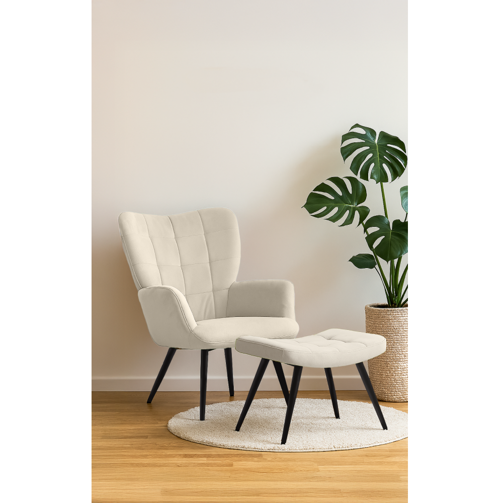Kreslo s podnožou, biela Velvet látka/čierna, HABEN