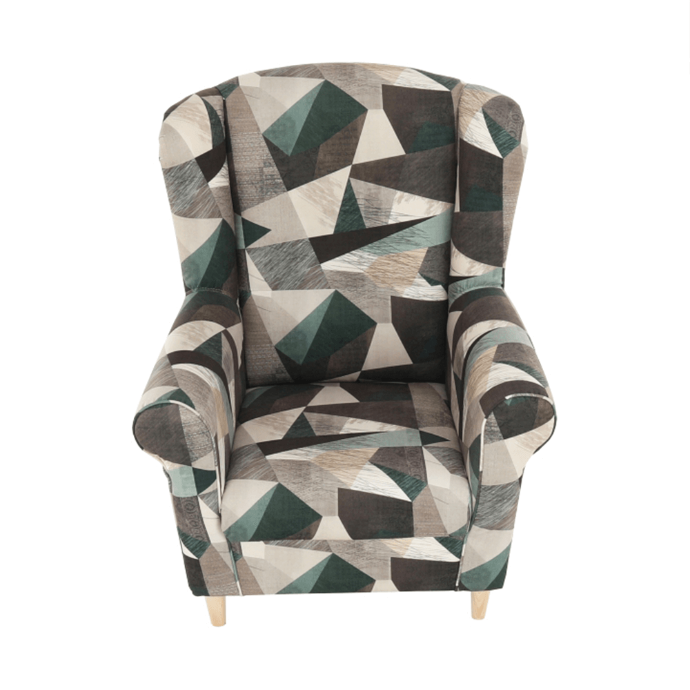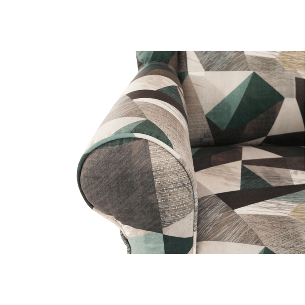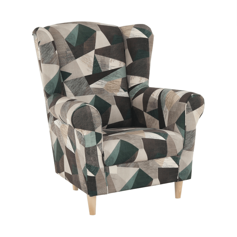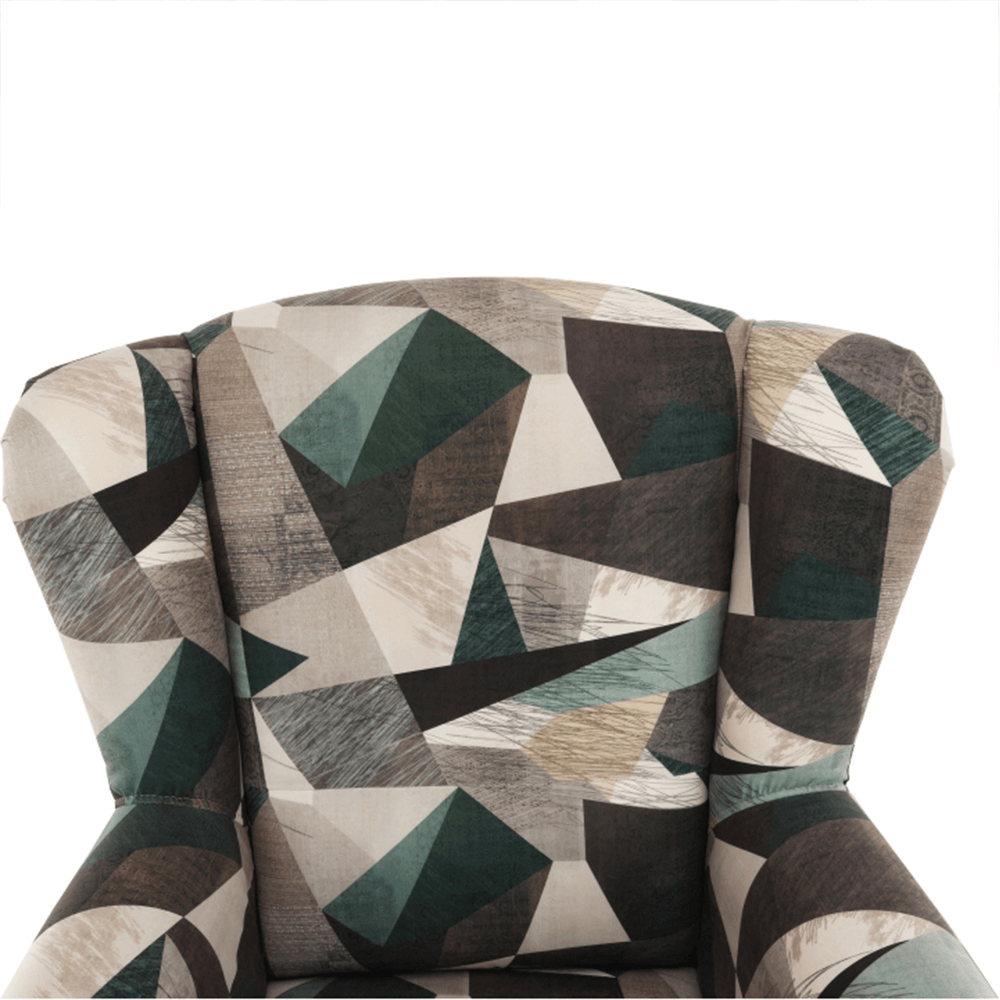Kreslo ušiak s taburetom, látka hnedo-zelená vzor, ASTRID