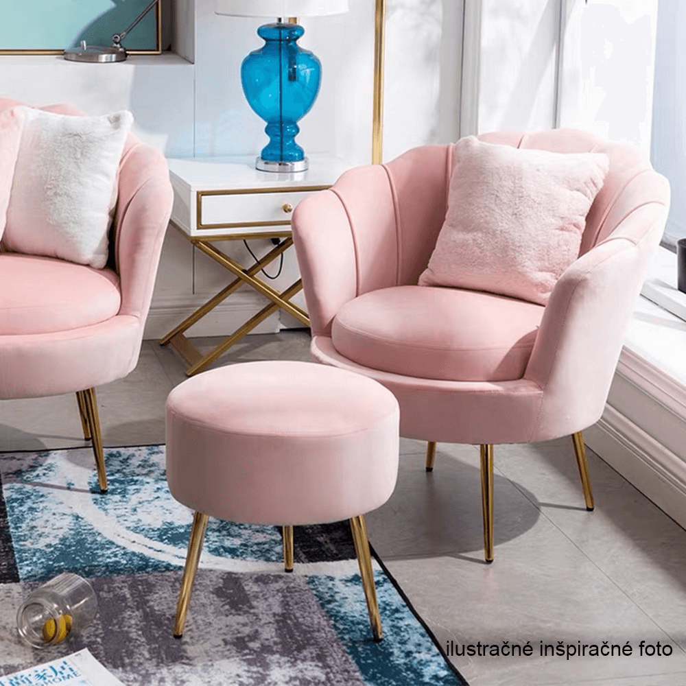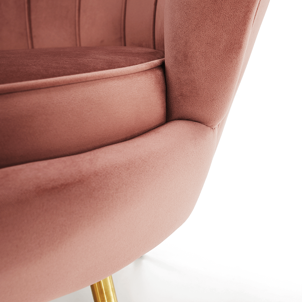 Kreslo v štýle Art-deco, ružová Velvet látka/gold chróm-zlatý, NOBLIN