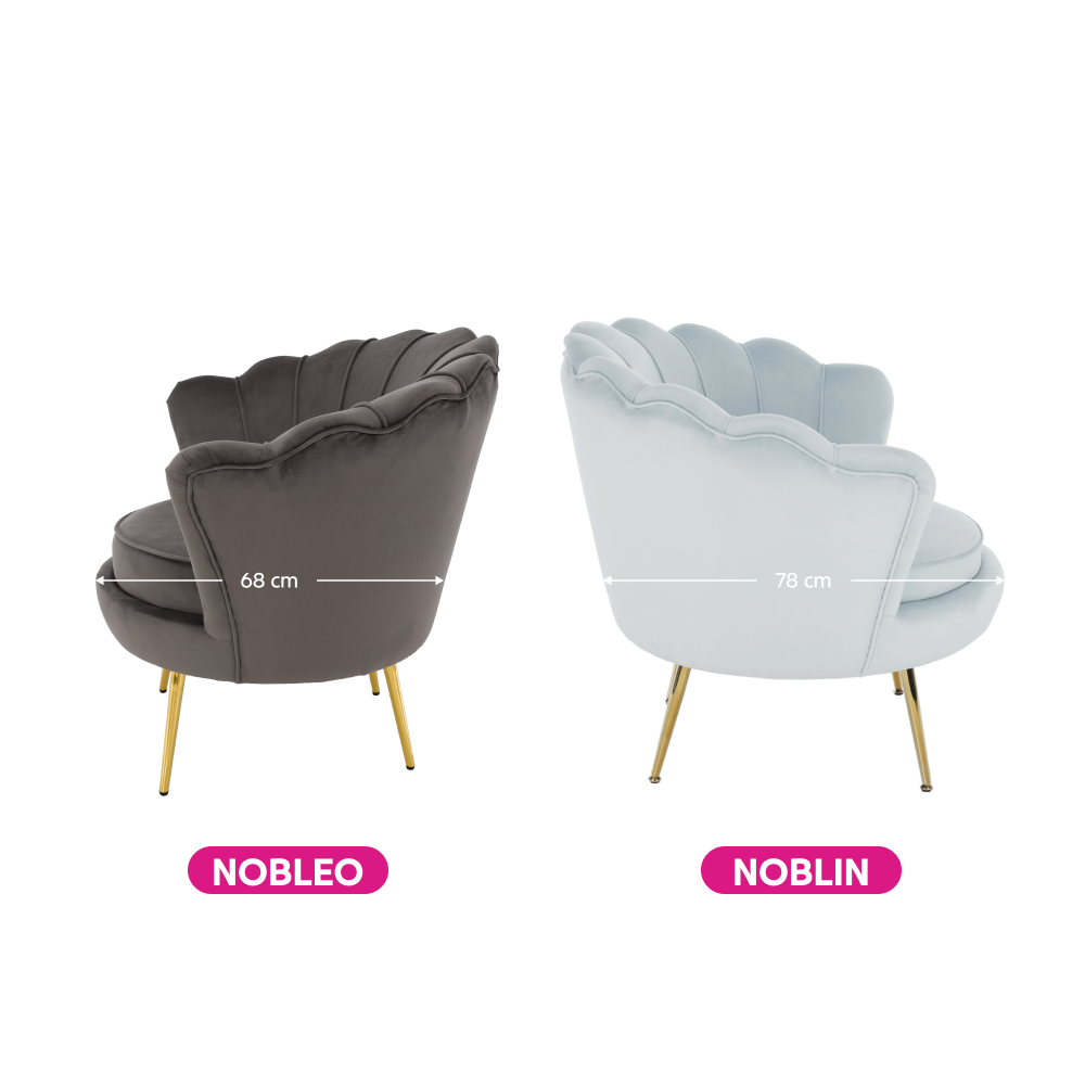 Kreslo v štýle Art-deco, sivomodrá Velvet látka/gold chróm-zlatý, NOBLIN
