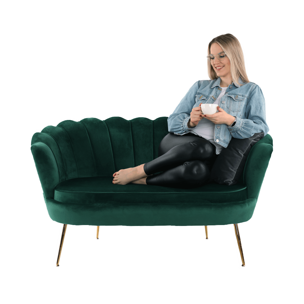 Lavica v štýle Art-deco, smaragdová Velvet látka/gold chróm-zlatý, NOBLIN