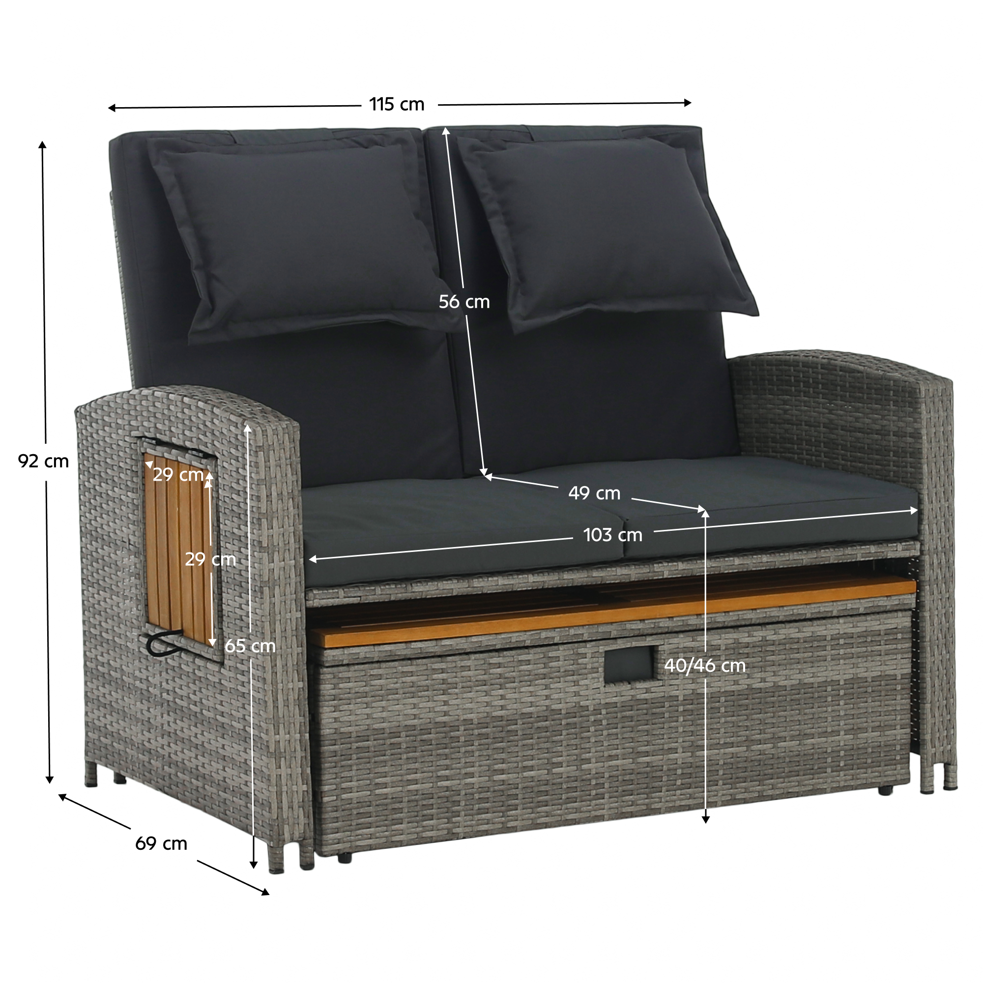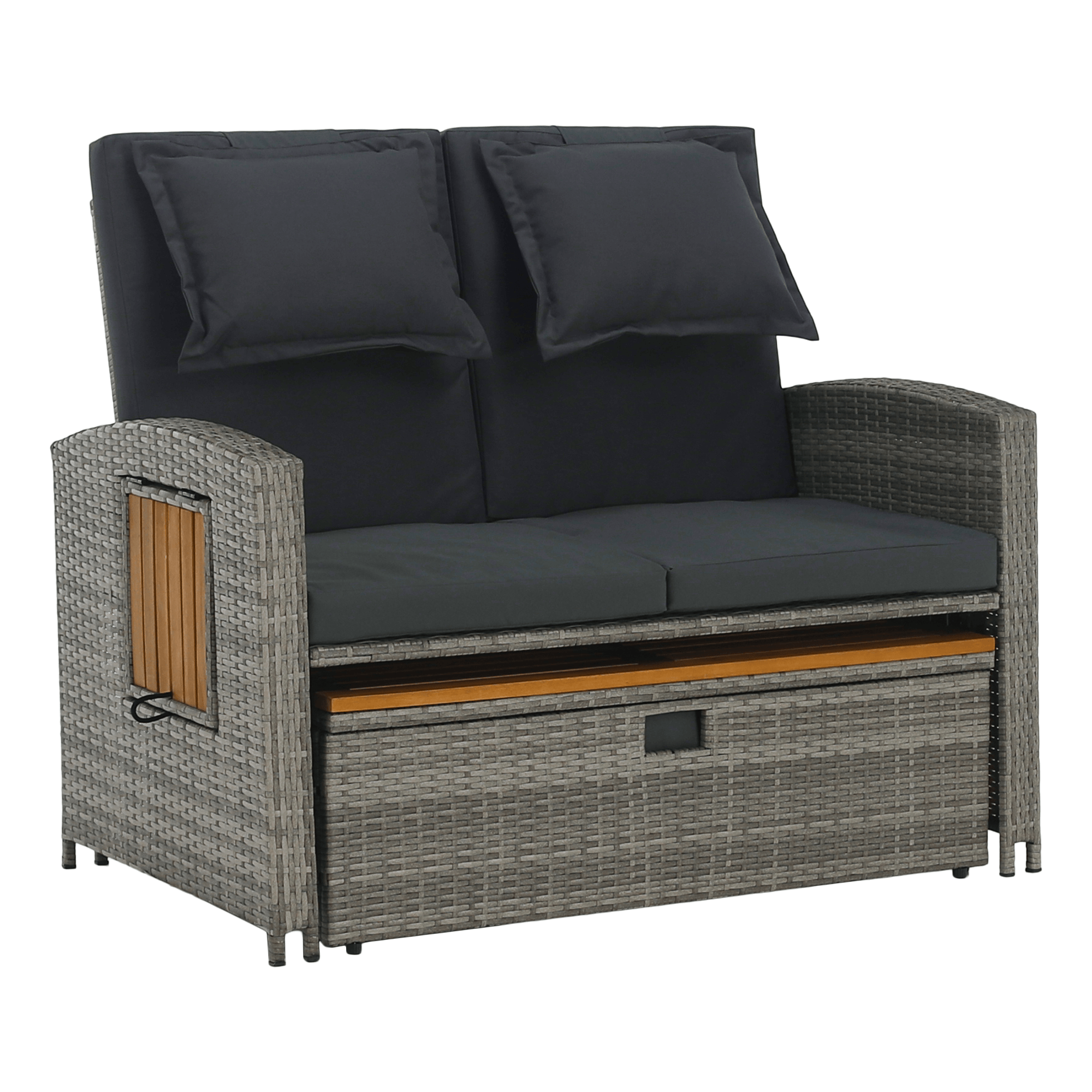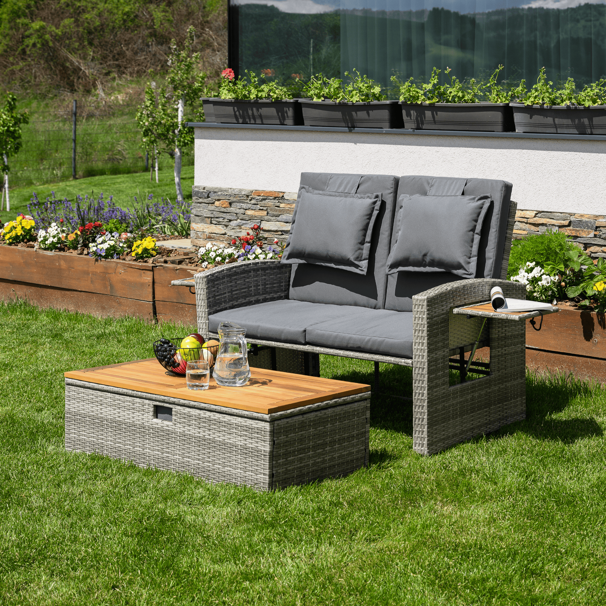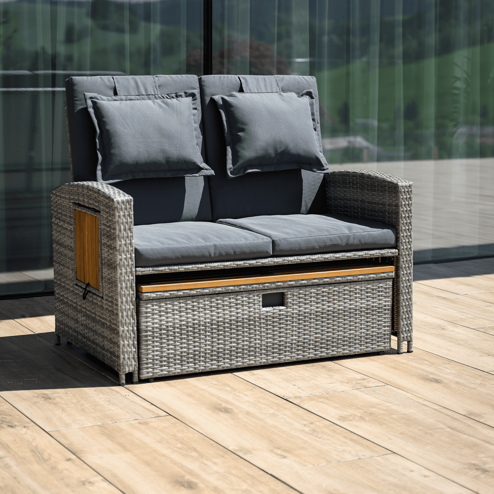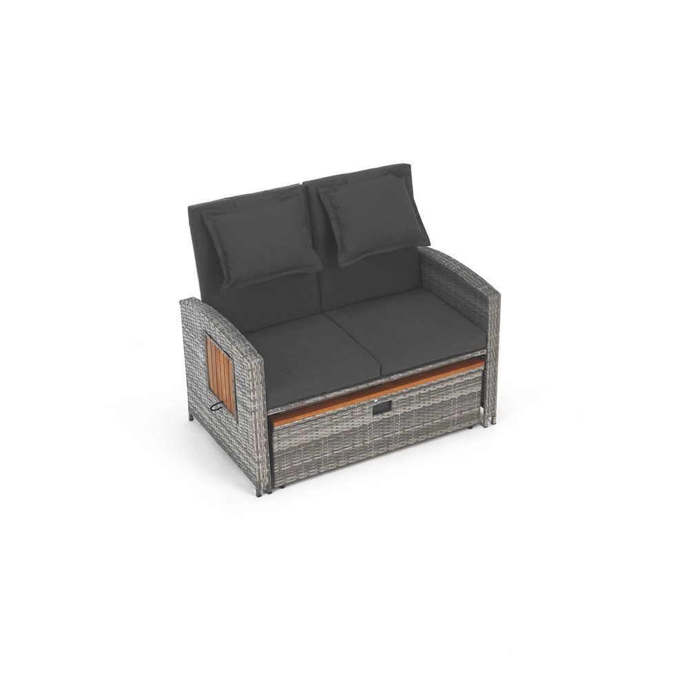 Záhradná ratanová pohovka, sivá/prírodná, MALORY