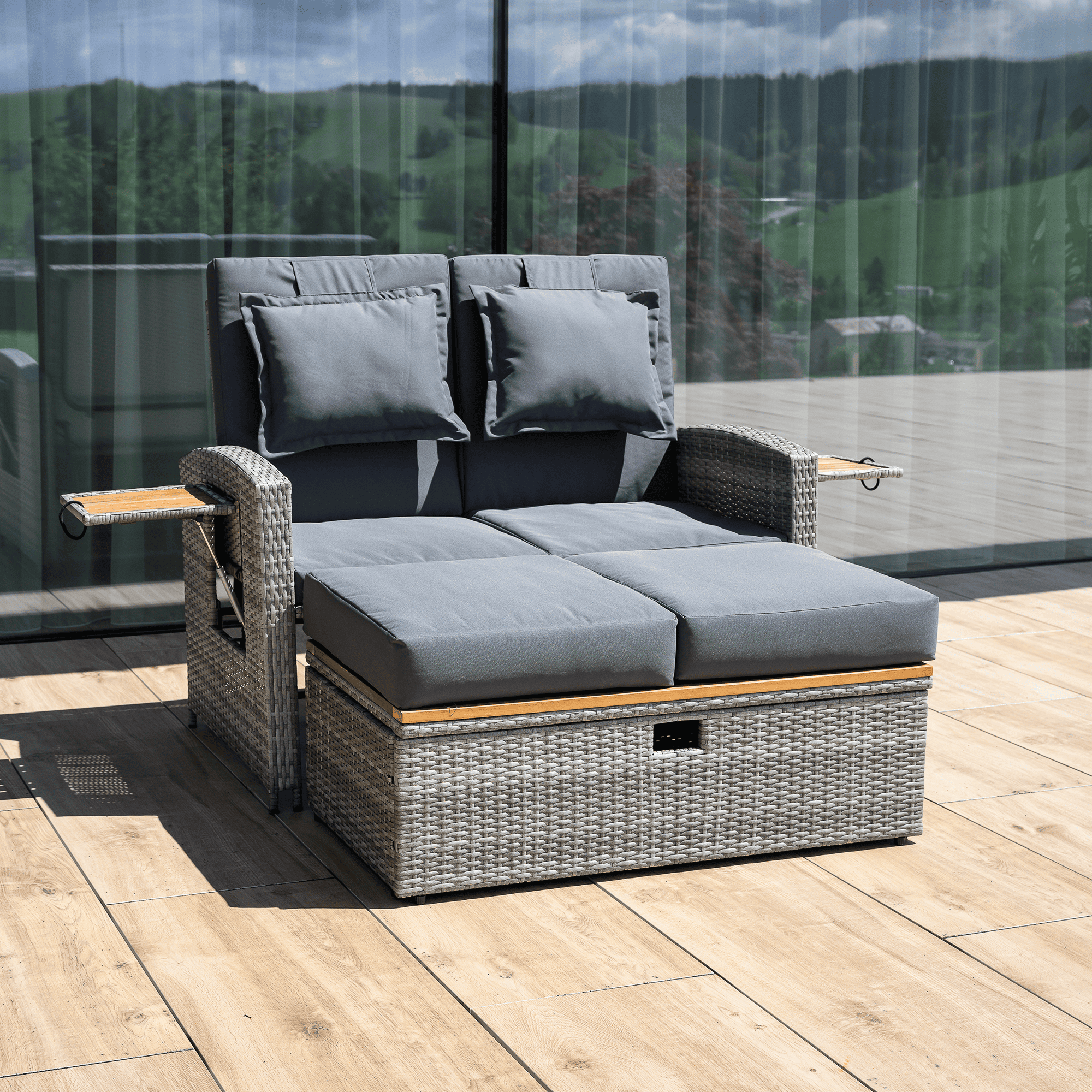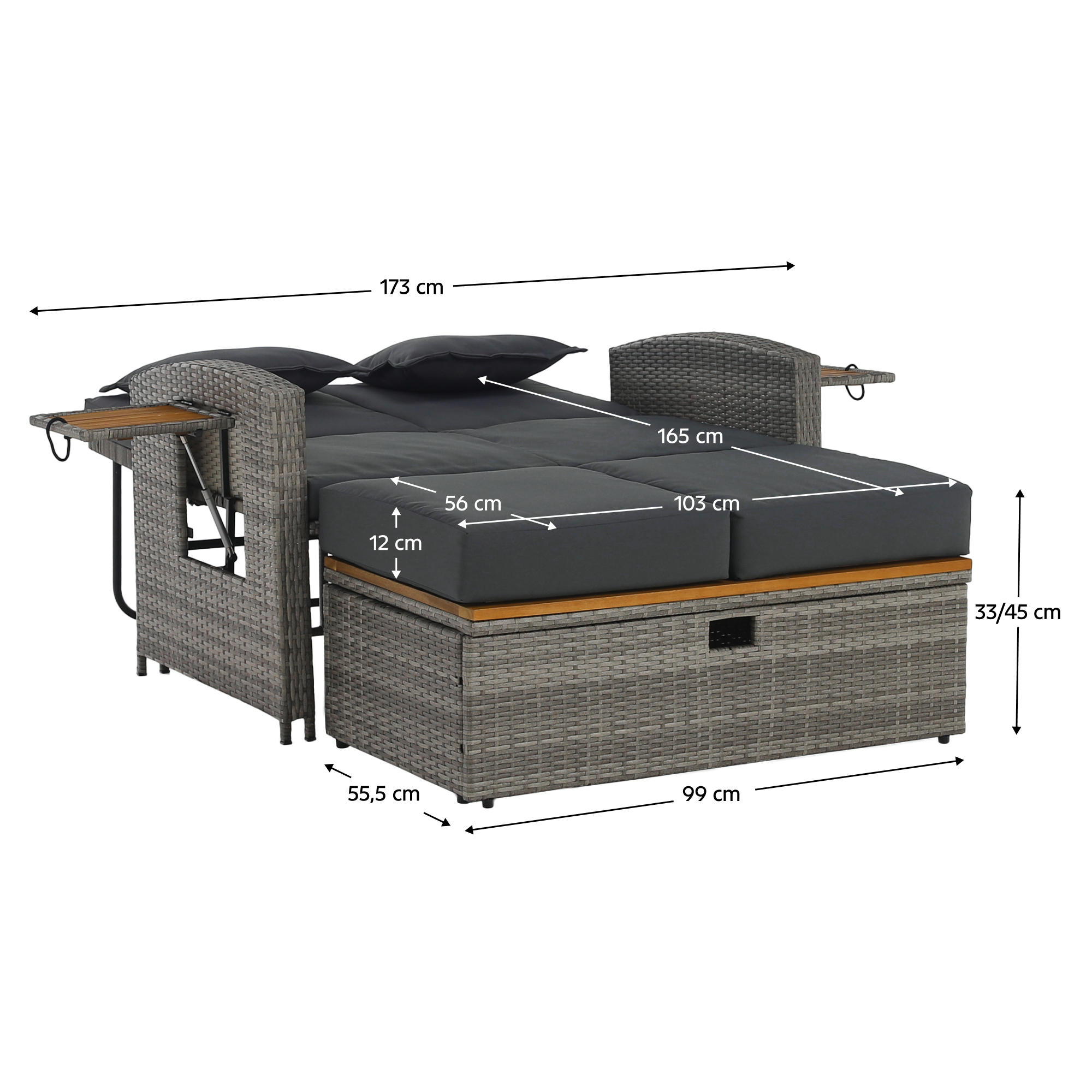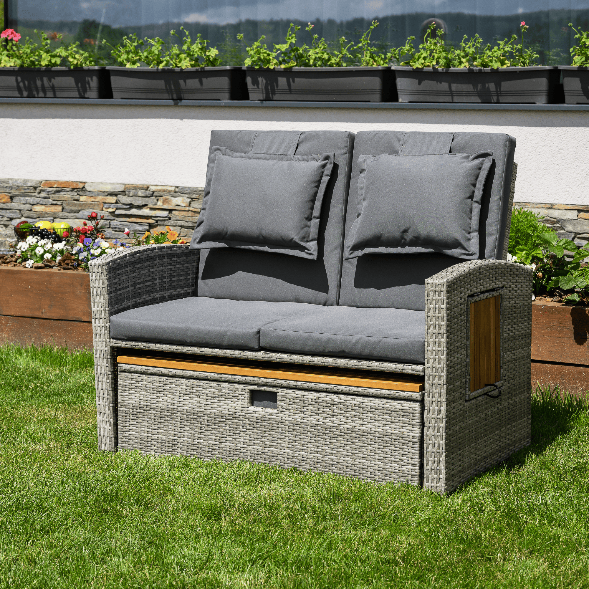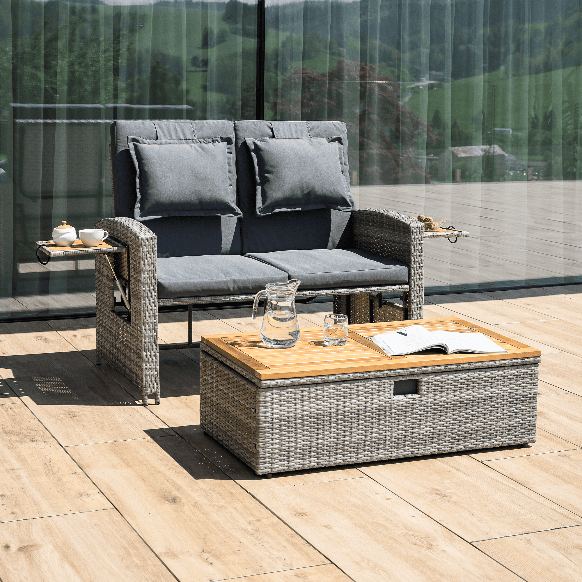 Záhradná ratanová pohovka, sivá/prírodná, MALORY
