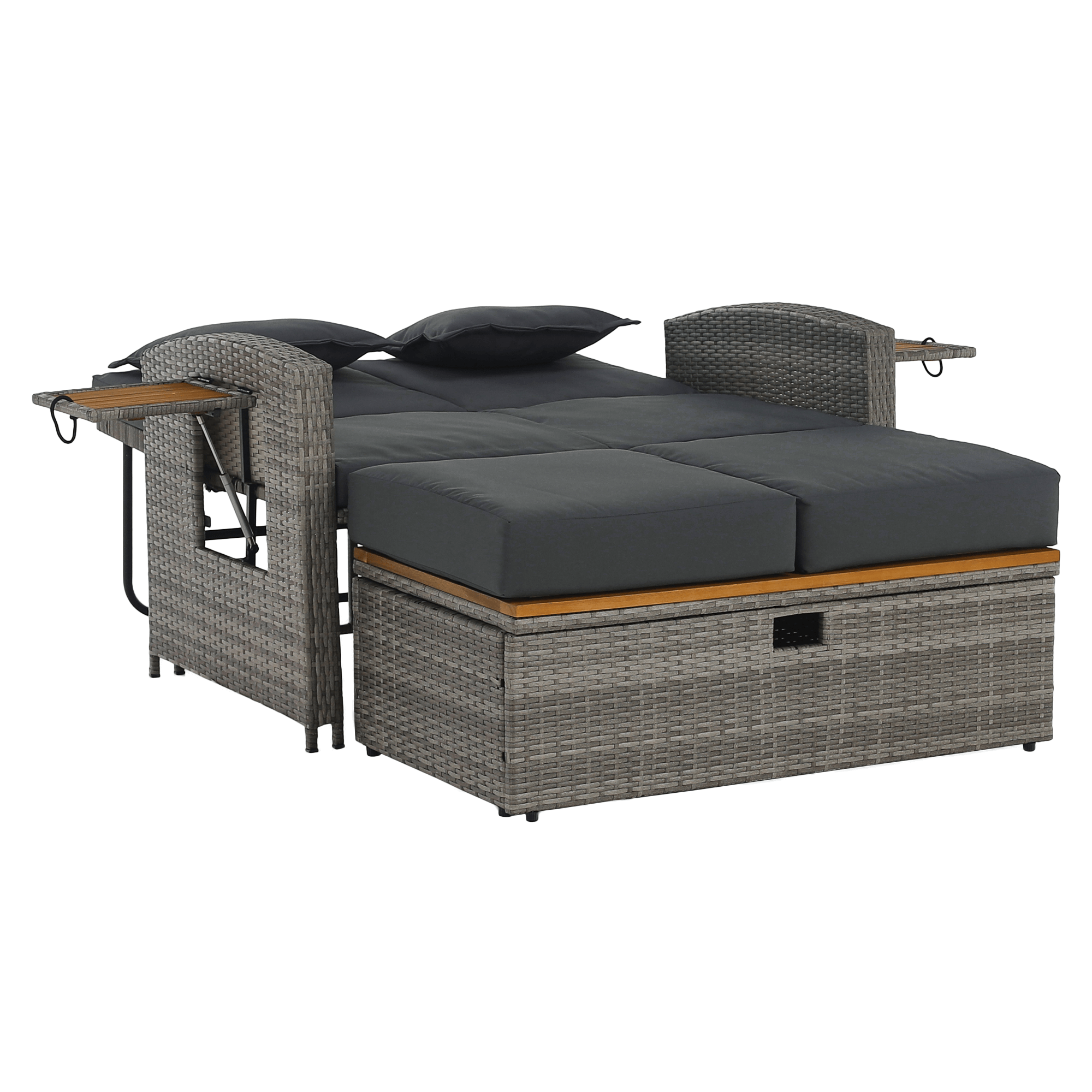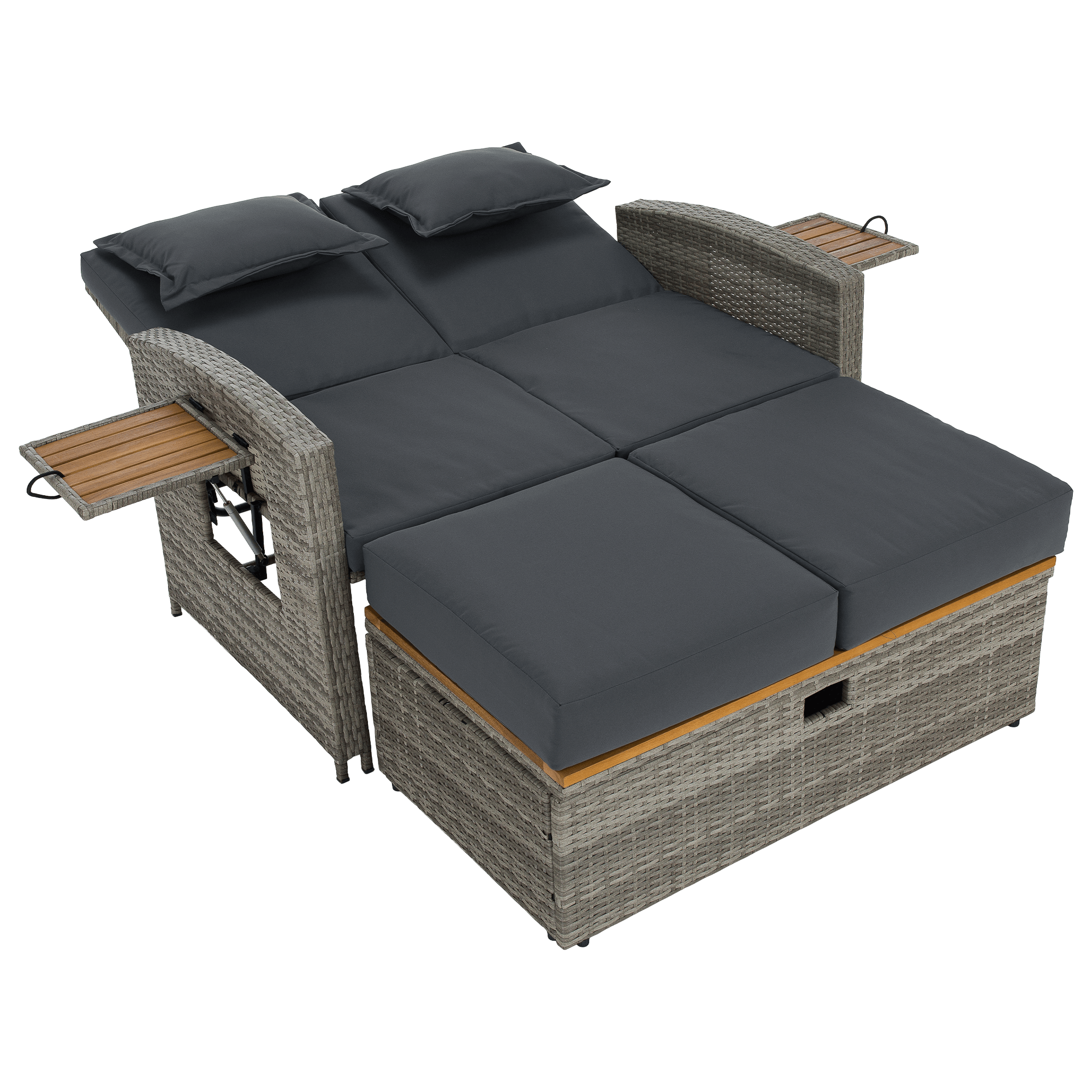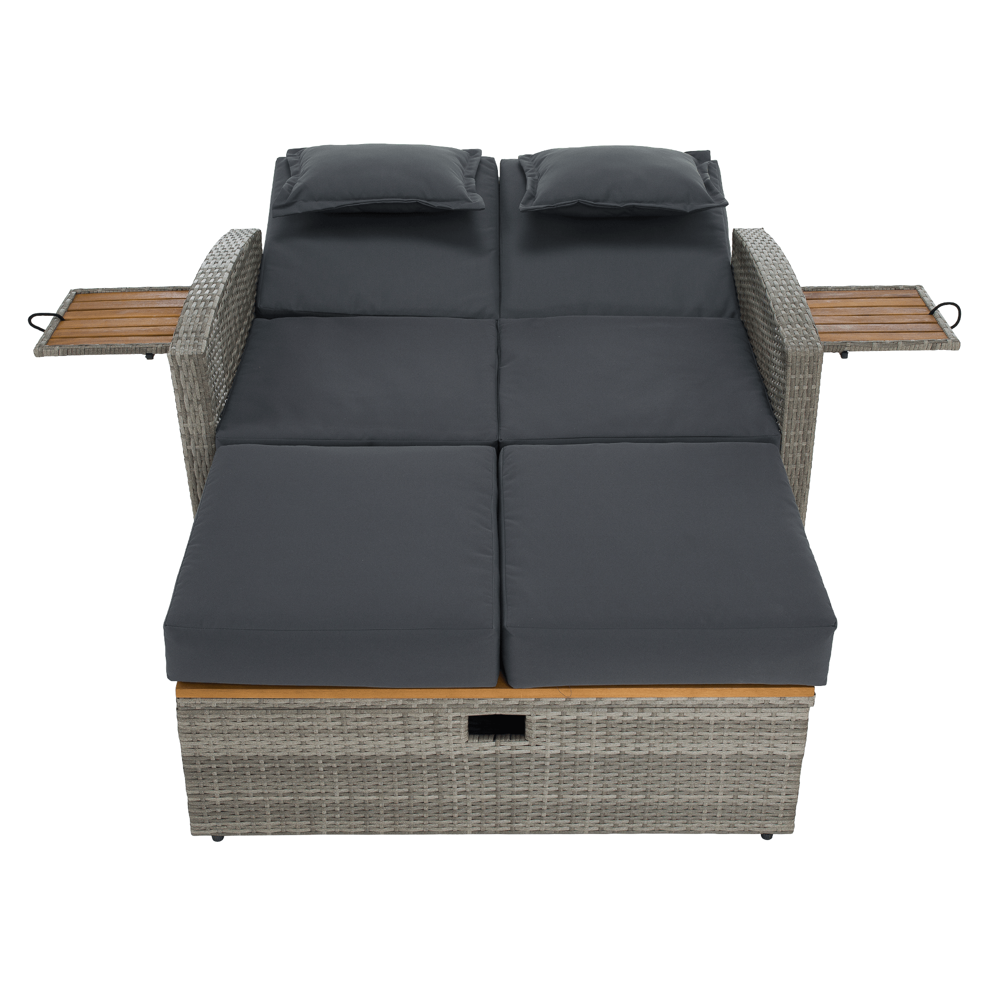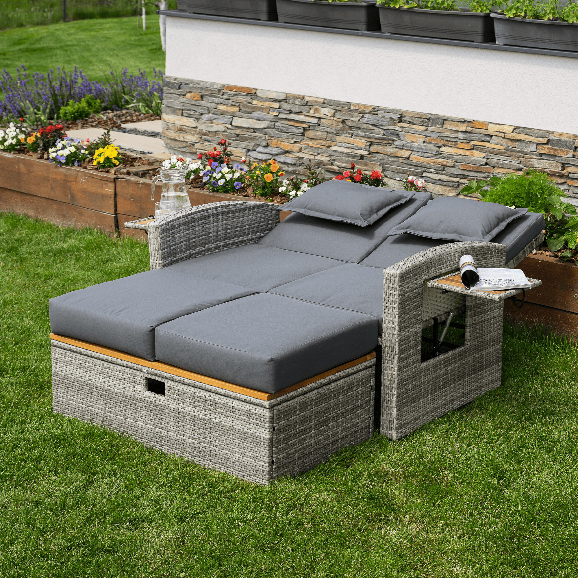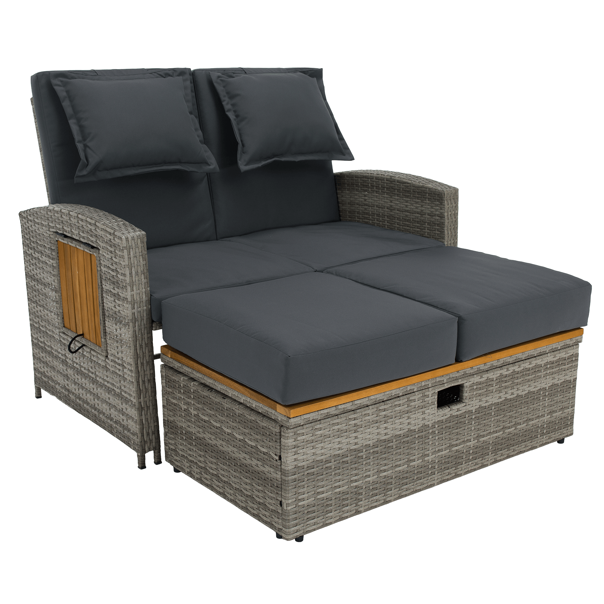 Záhradná ratanová pohovka, sivá/prírodná, MALORY