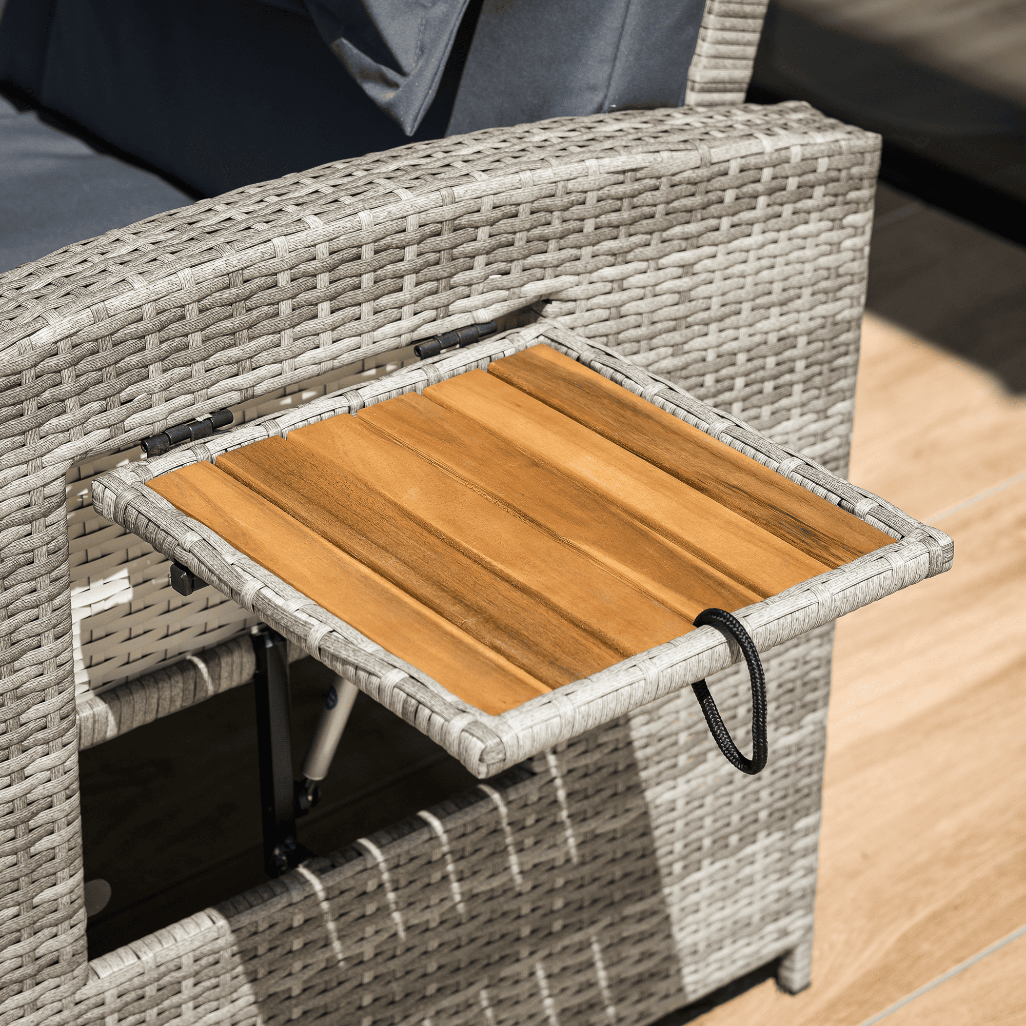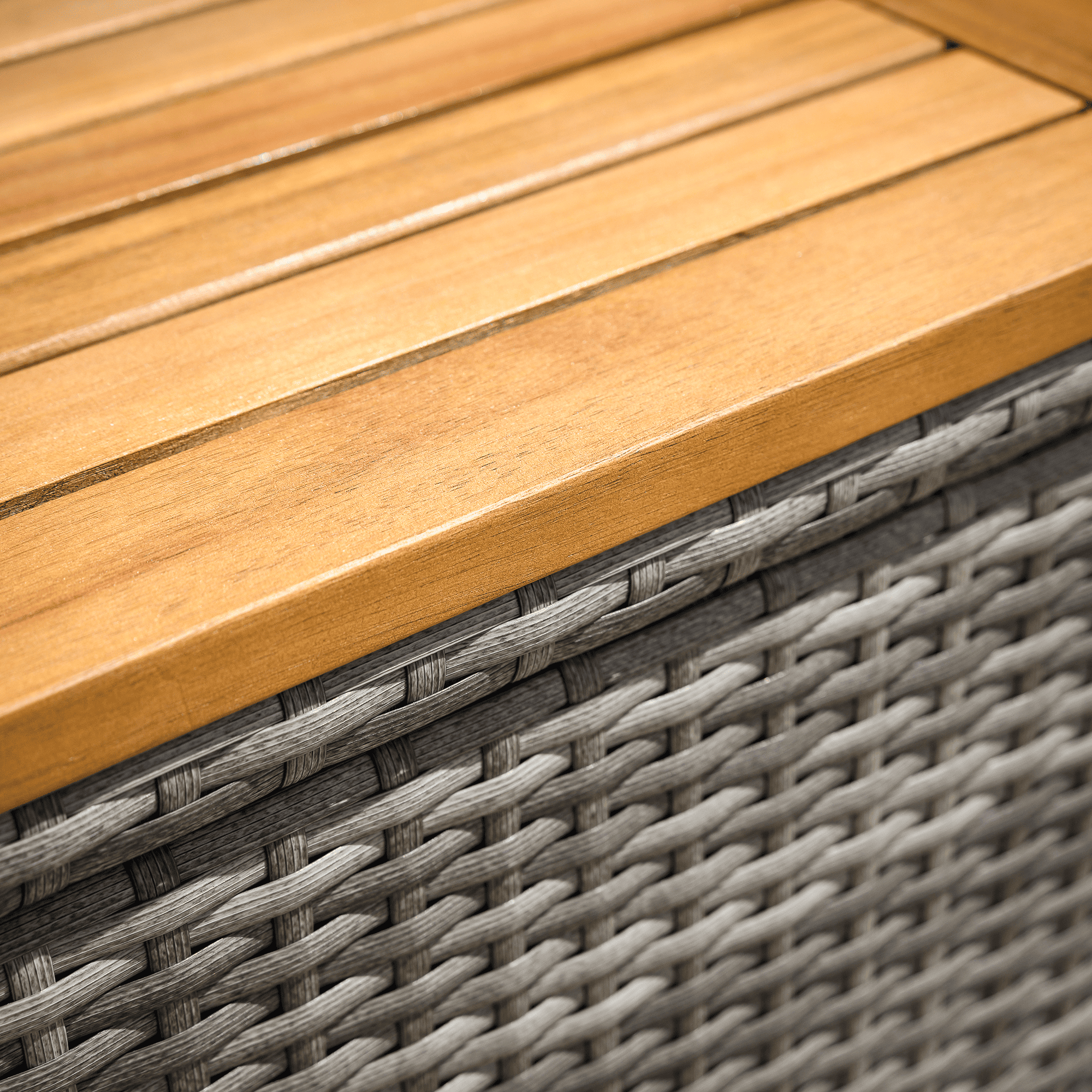 Materiál: technický ratan/oceľ/látka/akáciové drevo