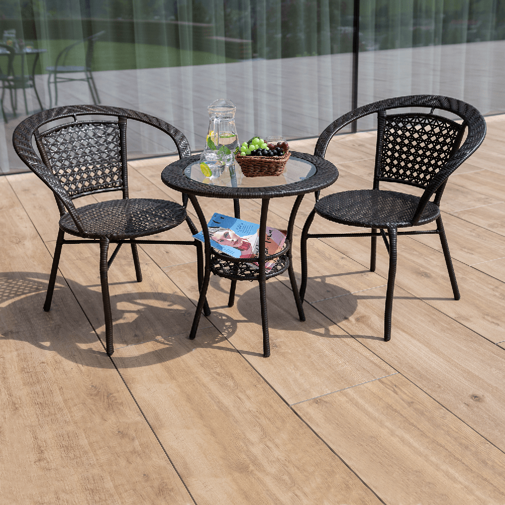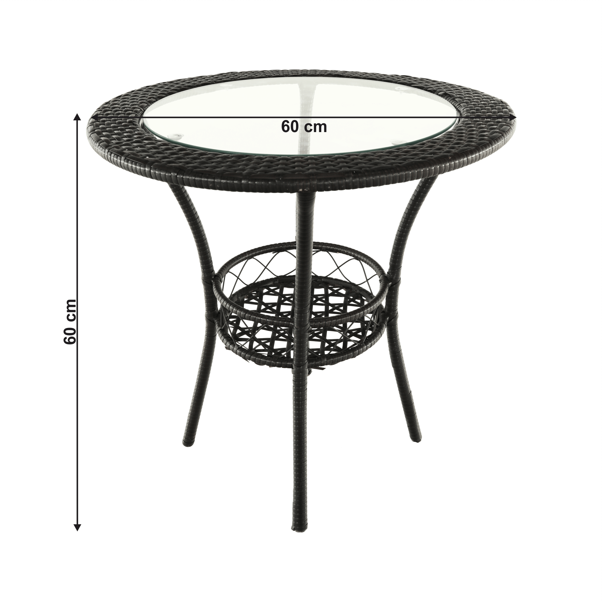 Materiál: umelý ratan/oceľ/tvrdené sklo
