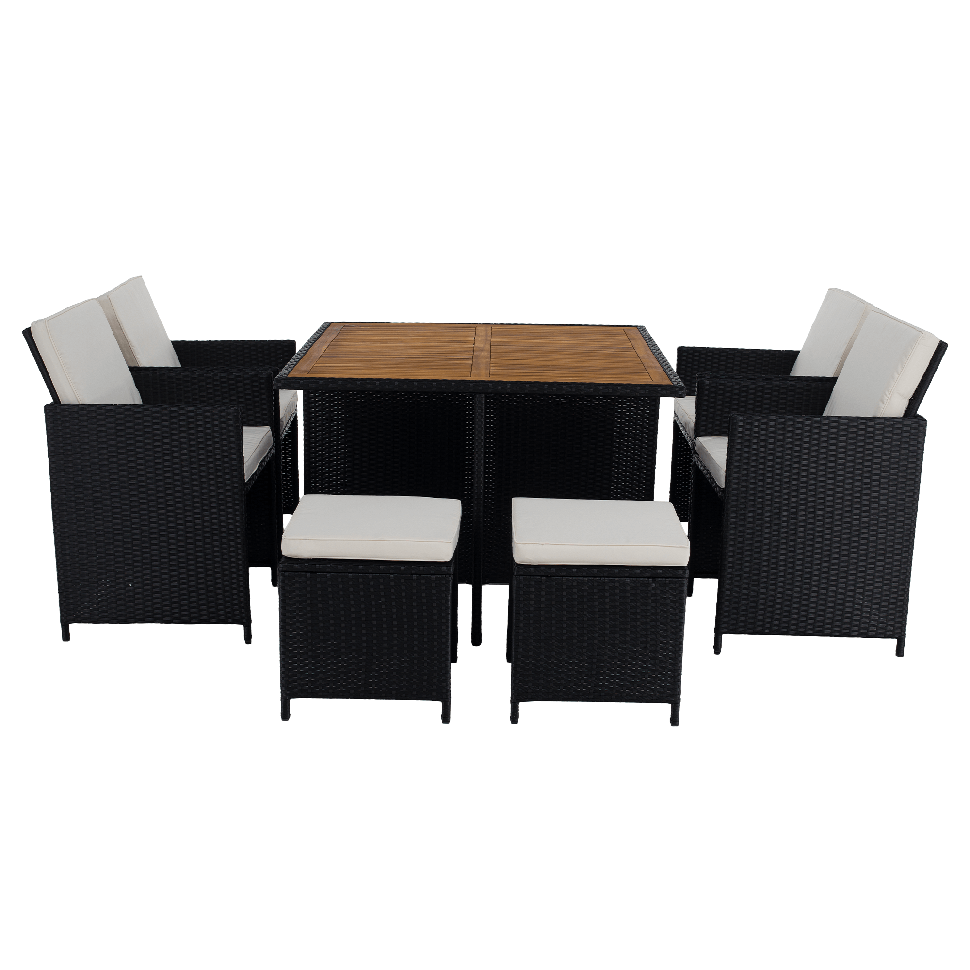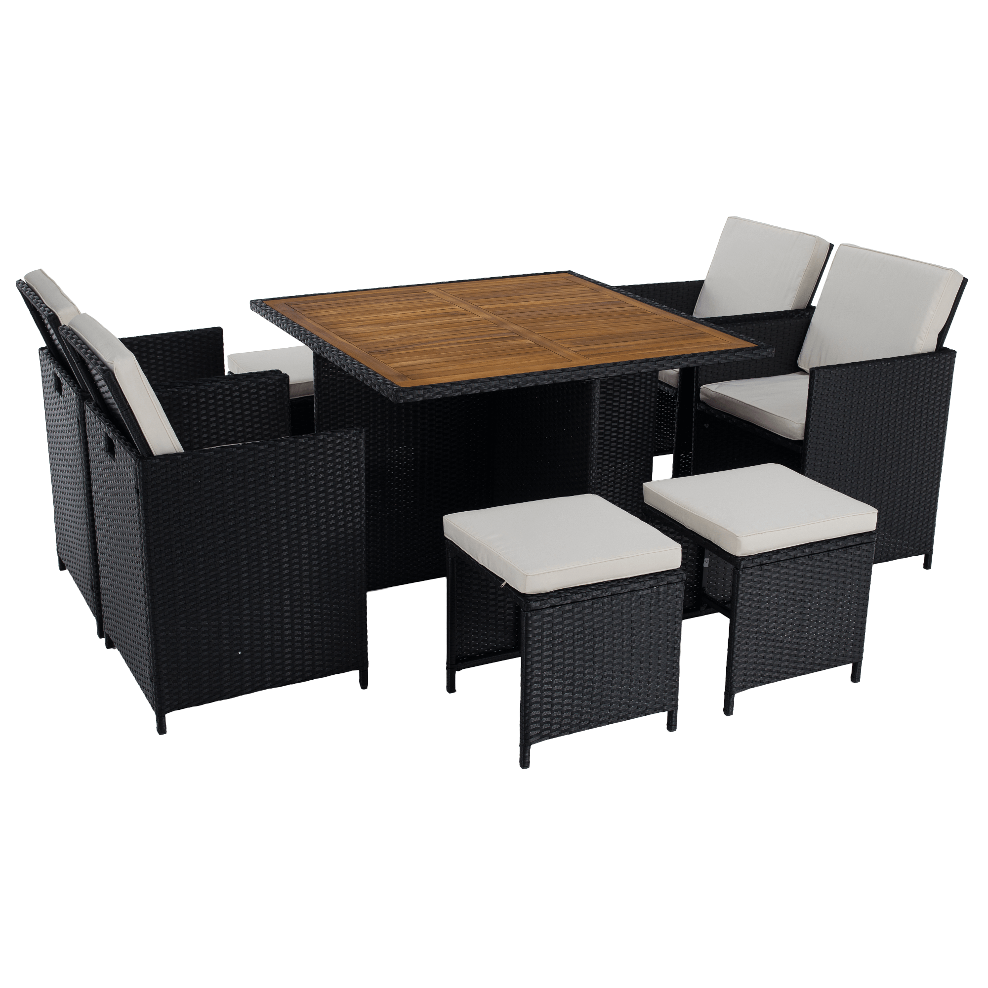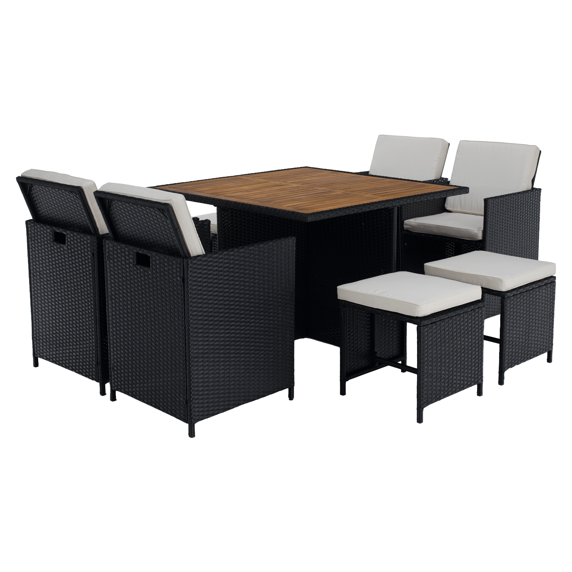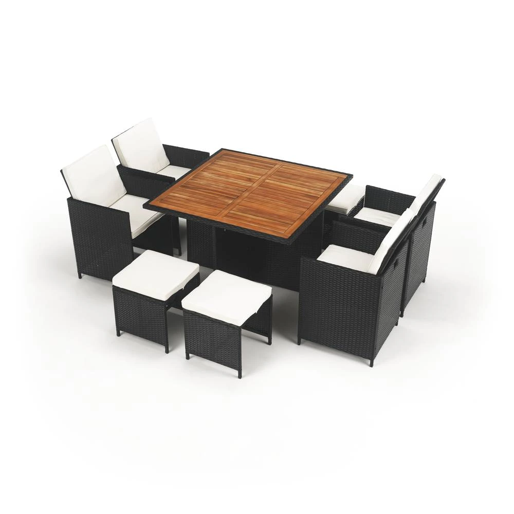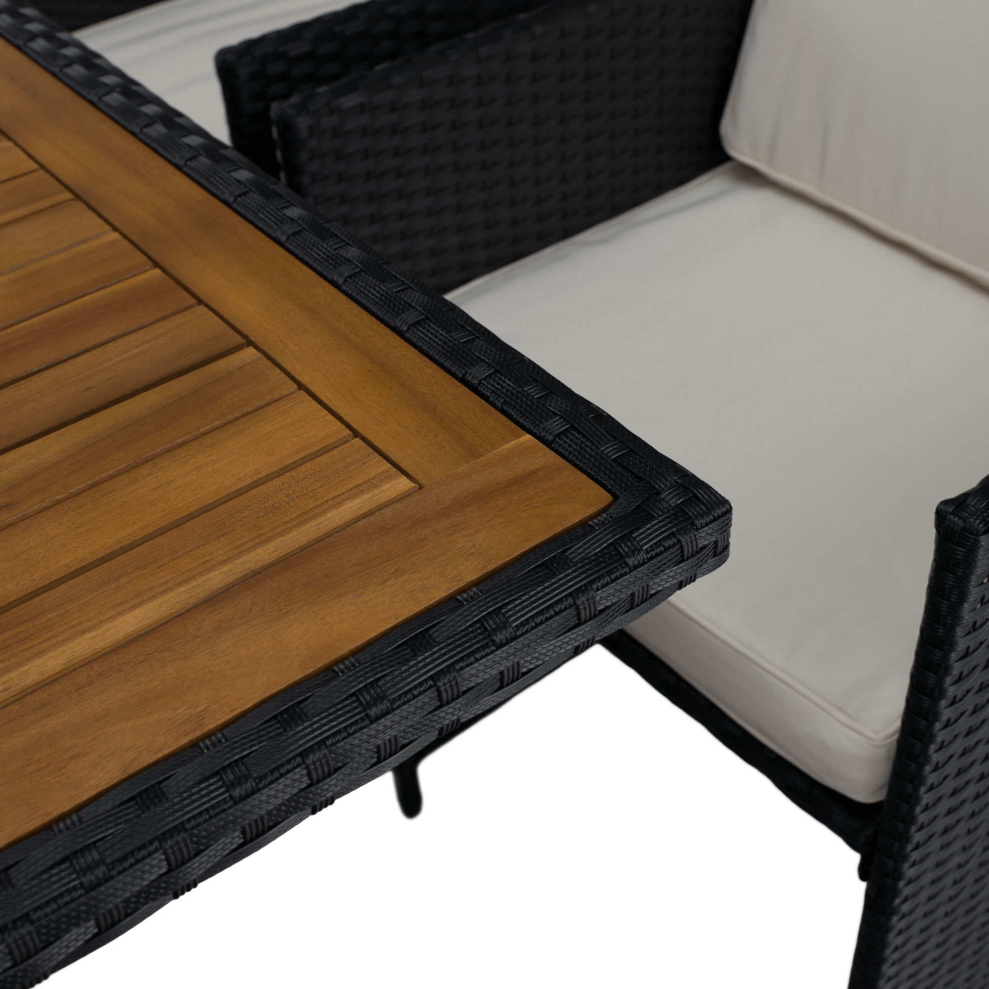 Záhradný ratanový set, akáciové drevo, čierna/krémová/prírodná, MELFORD