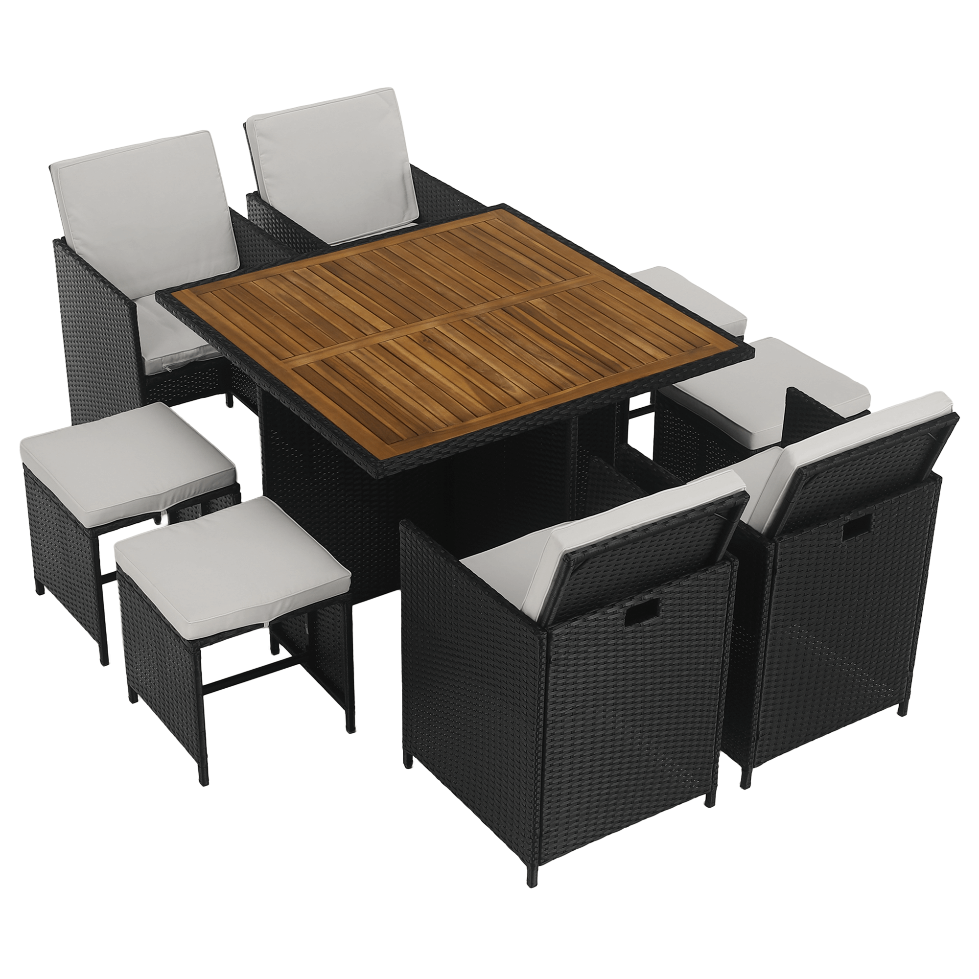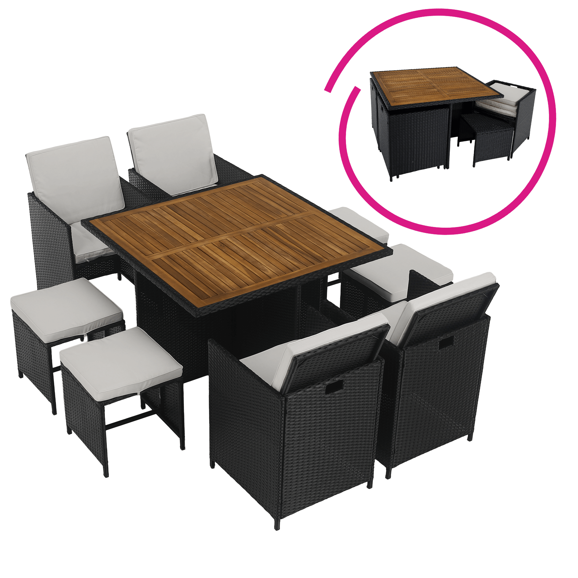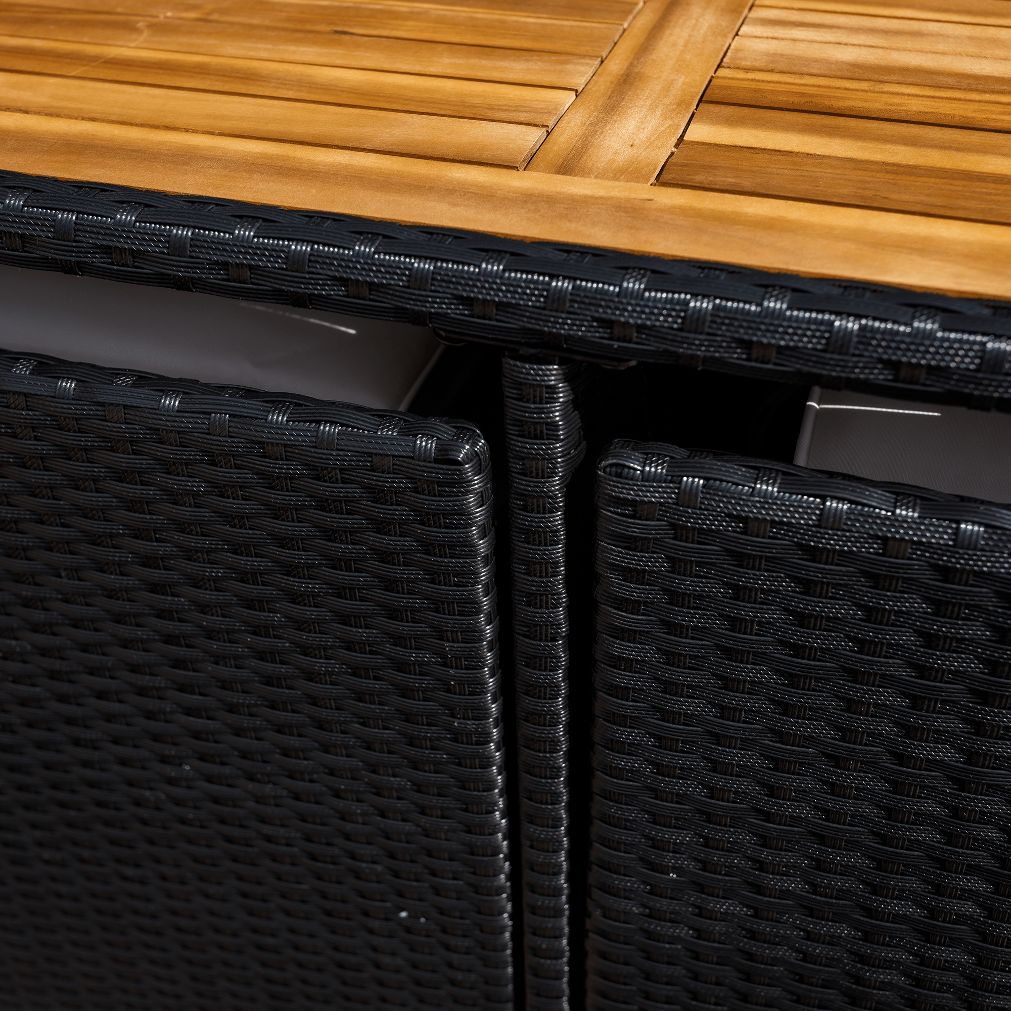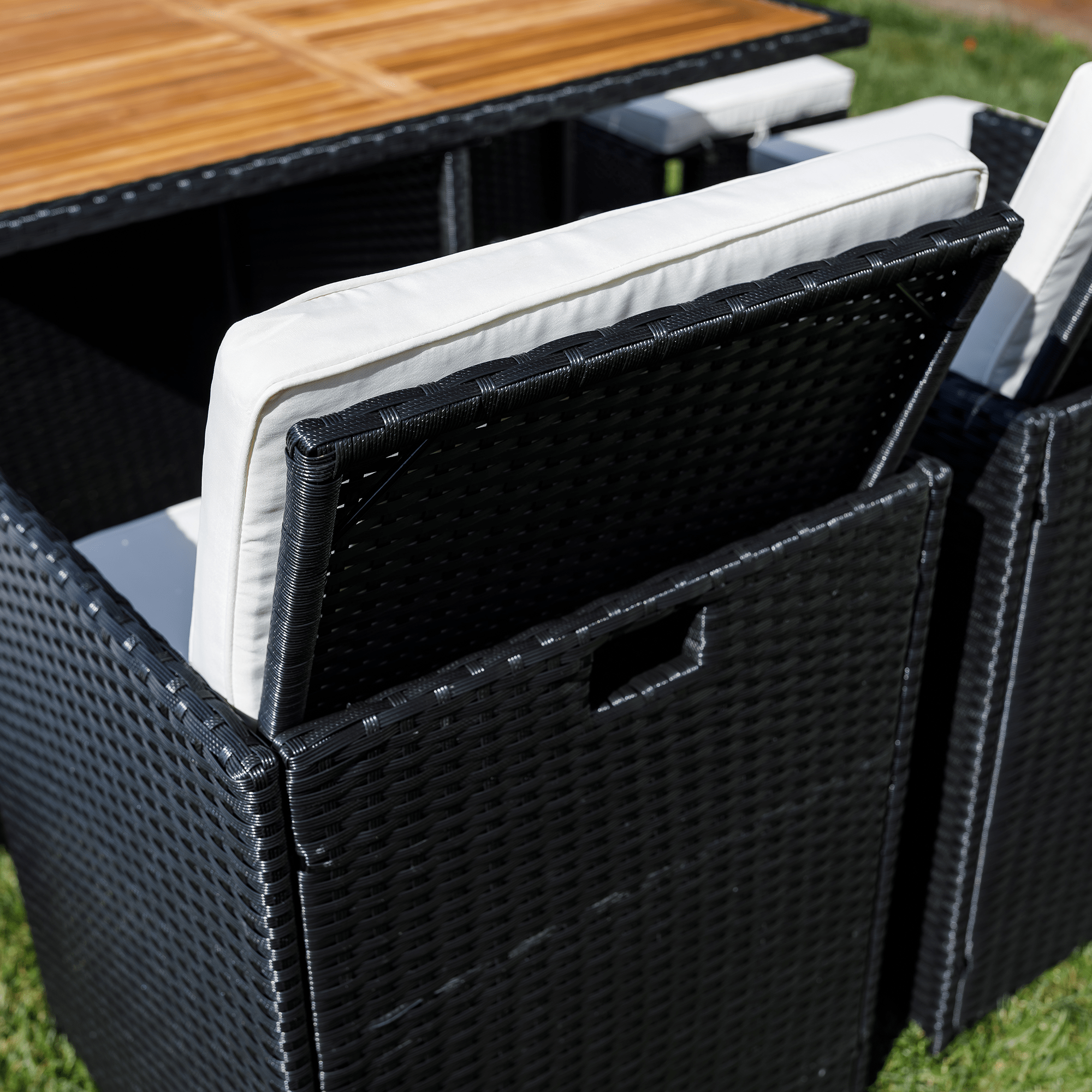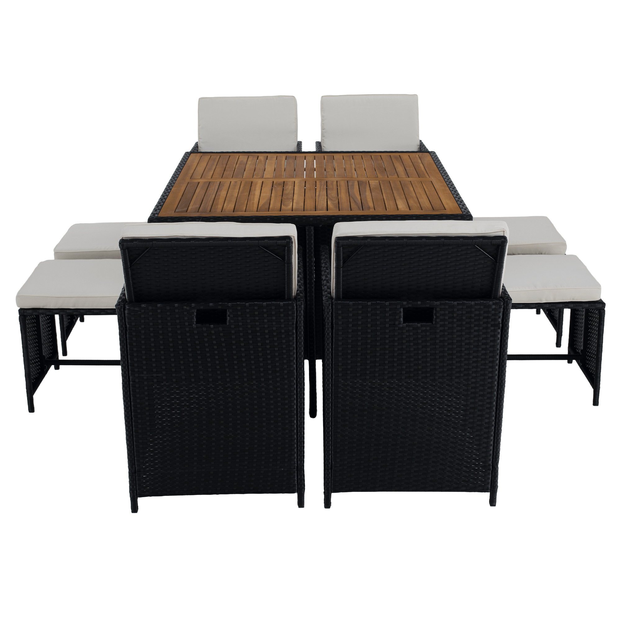 Záhradný ratanový set, akáciové drevo, čierna/krémová/prírodná, MELFORD
